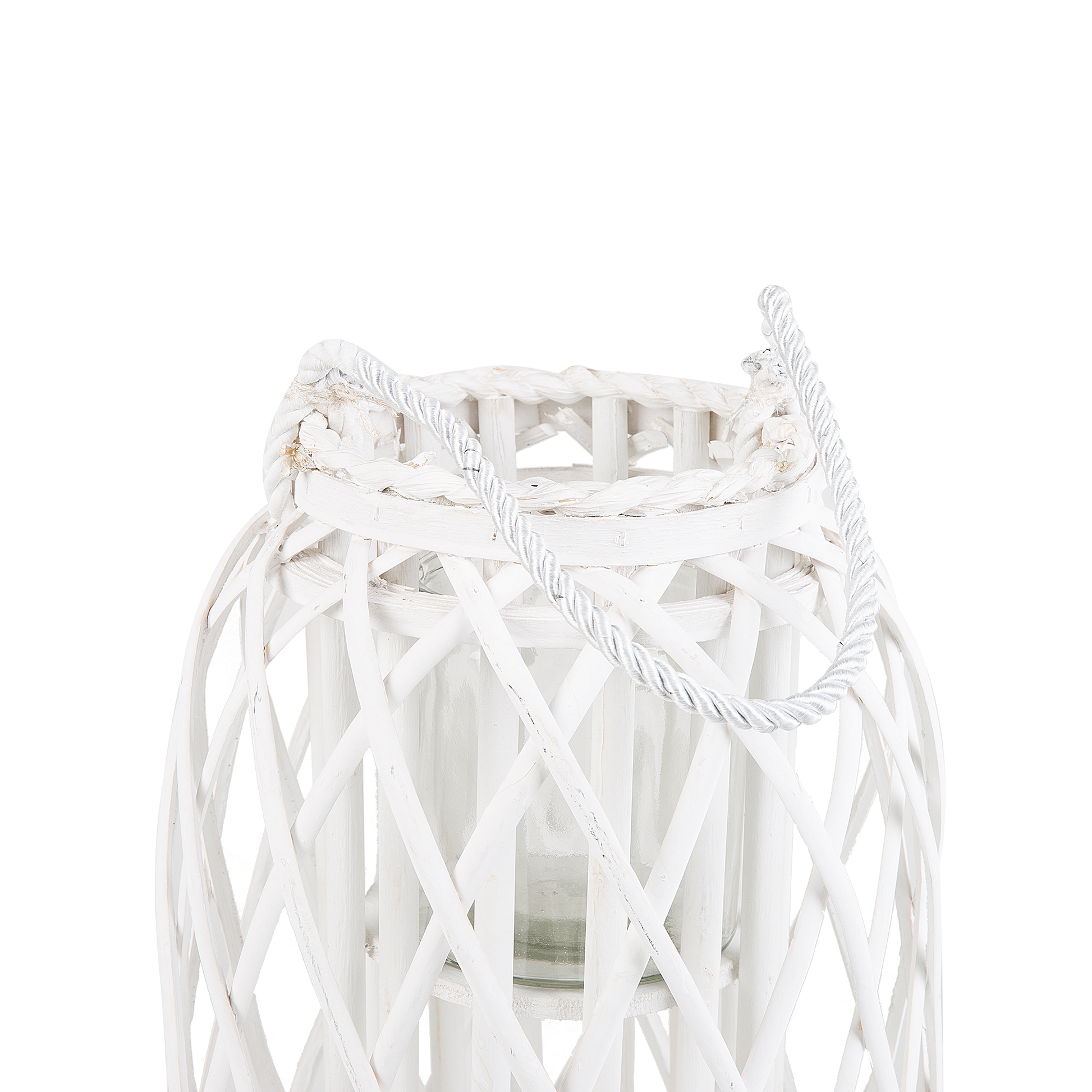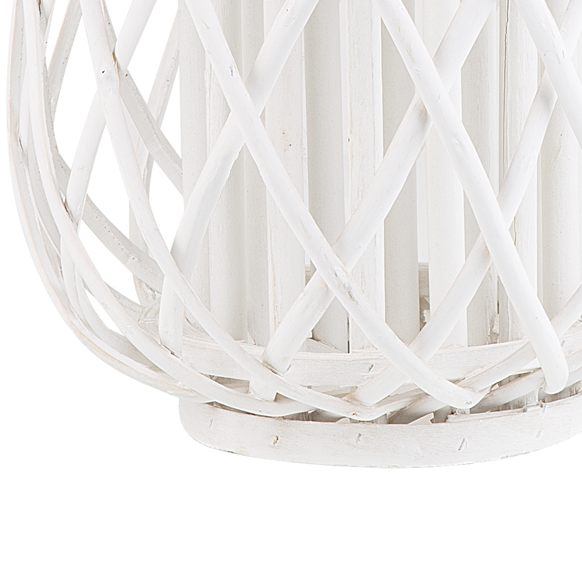 Diese dekorative Laterne, aus Weidenholz geflochten, passt in alle Wohnräume. Sie steht auf einem stabilen, runden Fuss und besitzt zudem einen Henkel aus geflochtenem Seil zum Aufhängen und auch Tragen. Im Inneren befindet sich ein Kerzenhalter aus Glas für eine stimmungsvolle Atmosphäre. Material: Weidenholz. Zusätzliches Material: Glas. Gewicht: 1 Montage: Benötigt keine Montage Holzart: Salix Holzursprung: China Das Angebot beinhaltet: 1 x Laterne Höhe: 30 zusätzliche Information: Laternen aus Holz sollten nicht für längere Zeit im Freien aufbewahrt werden, da extreme Witterungsbedingungen zum Verbiegen der Holzelemente führen können Gestalten: Oval Breite: 25 Tiefe: 25 Art: Laterne Stil: Rustikal Allgemeine Farbe: Weiss Hauptmaterial: Weidenholz