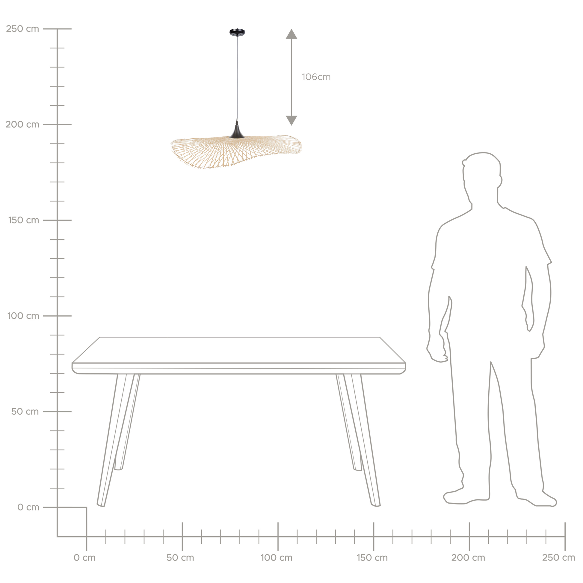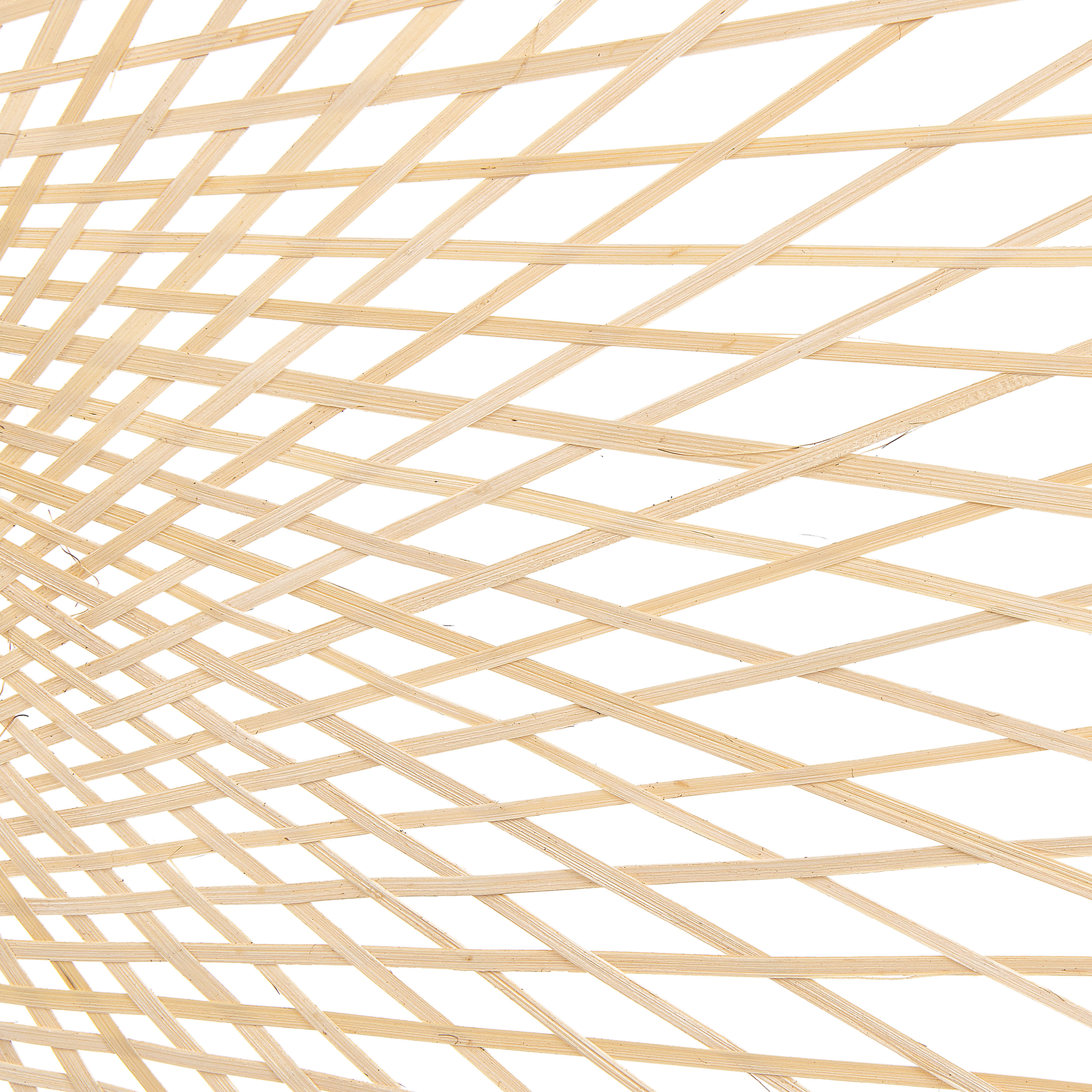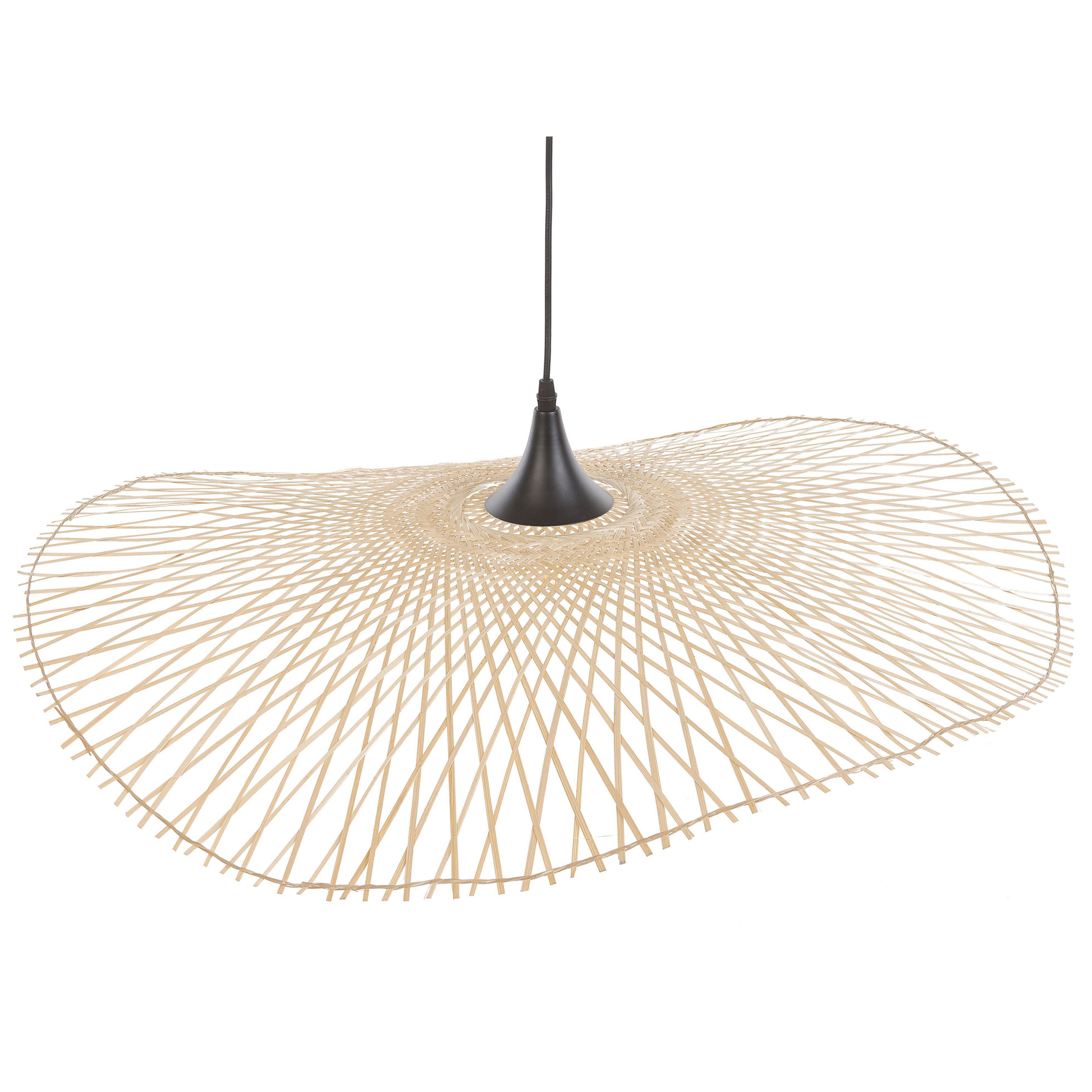 Die naturbelassenen Bambusstreben des Lampenschirms verleihen dieser Hängeleuchte eine warme Ausstrahlung im Boho-Look. Kombiniert man dieses Lichtaccessoire mit Holz- und Rattanmöbel und ergänzt man es mit hellen Dekoartikeln und gestrickten Poufs, wird eine Wohlfühloase in jedem Daheim geschaffen. Material: Bambusholz. Zusätzliches Material: Metall, PVC. Gewicht: 1 Montage: Installation benötigt Holzart: Bambusoideae Holzursprung: China Das Angebot beinhaltet: 1 x Hängeleuchte, Nicht im Lieferumfang enthalten: Leuchtmittel Höhe: 130 zusätzliche Information: Diese Leuchte ist geeignet für Leuchtmittel der Energieklassen A bis G auf einer Skala von A (sehr effizient) bis G (weniger effizient). Geeignet für: LED Leuchtmittel, Eco-Halogen Leuchtmittel, Energiesparleuchtmittel., Die Stromkabel dürfen nur von einem qualifizierten Elektriker angepasst werden., Der Lampenschirm wird in einem flachen Zustand geliefert und nimmt erst mehrere Stunden nach der Installation seine endgültige, wellige Form an. Bitte verbiegen Sie keine Elemente manuell, da dies das Modell beschädigen könnte., Holz ist ein Naturprodukt. Farb- und Strukturunterschiede, Narben, Falten und sonstige Naturmerkmale sind Echtheitsbeweise und keine zur Reklamation berechtigende Fehler. Breite: 80 Tiefe: 80 Art: Hängelampe Stil: Boho Allgemeine Farbe: Heller Holzfarbton Hauptmaterial: Bambusholz Fassung: Max. 40 W IP Protection Code: IP 20