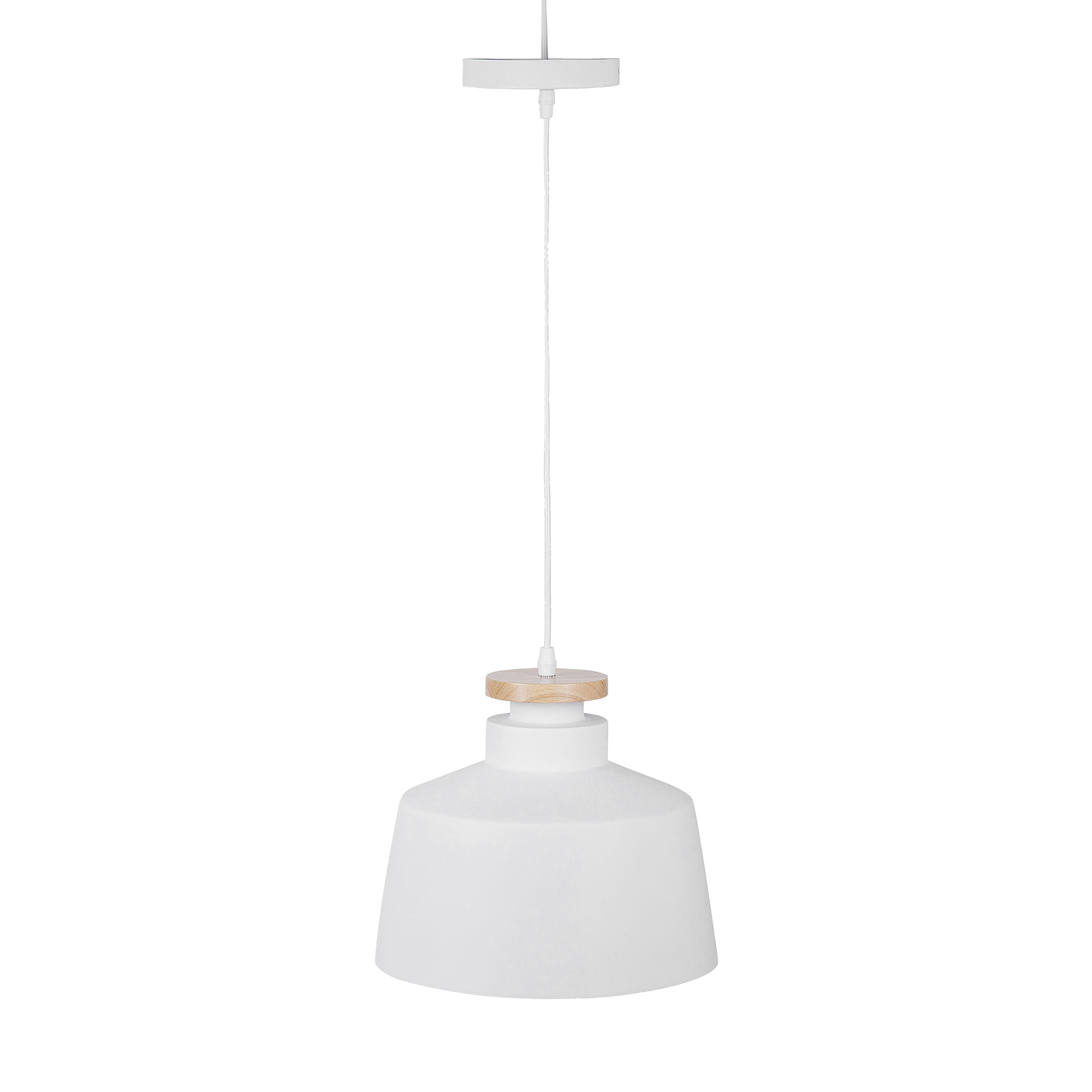 Description: Mit ihrer klaren Formgebung und dem edlen Farbton passt die Leuchte nicht nur zu modernen und industriellen Einrichtungen, dank der Kombination mit einem Holzelement kommt sie auch in ländlichen und skandinavischen Wohnstilen wirkungsvoll zur Geltung. Ein schmaler Ring aus natürlichem, hellem Holz an der oberen Spitze des Lampenschirms aus robustem Aluminium lockert das Design auf und verleiht ihr eine pfiffige Ausstrahlung. Die Lampe ist mit einem weisen Kabel versehen. Material: Aluminium. Zusätzliches Material: Kunststoff. Gewicht: 1 Montage: Installation benötigt Das Angebot beinhaltet: 1 x Hängeleuchte, Nicht im Lieferumfang enthalten: Leuchtmittel Höhe: 180 zusätzliche Information: Diese Leuchte ist geeignet für Leuchtmittel der Energieklassen A bis G auf einer Skala von A (sehr effizient) bis G (weniger effizient). Geeignet für: LED Leuchtmittel, Eco-Halogen Leuchtmittel, Energiesparleuchtmittel., Die Stromkabel dürfen nur von einem qualifizierten Elektriker angepasst werden. Breite: 28 Tiefe: 28 Art: Hängeleuchte Stil: Modern Allgemeine Farbe: Weiss Hauptmaterial: Aluminium Fassung: Max. 60 W IP Protection Code: IP 20