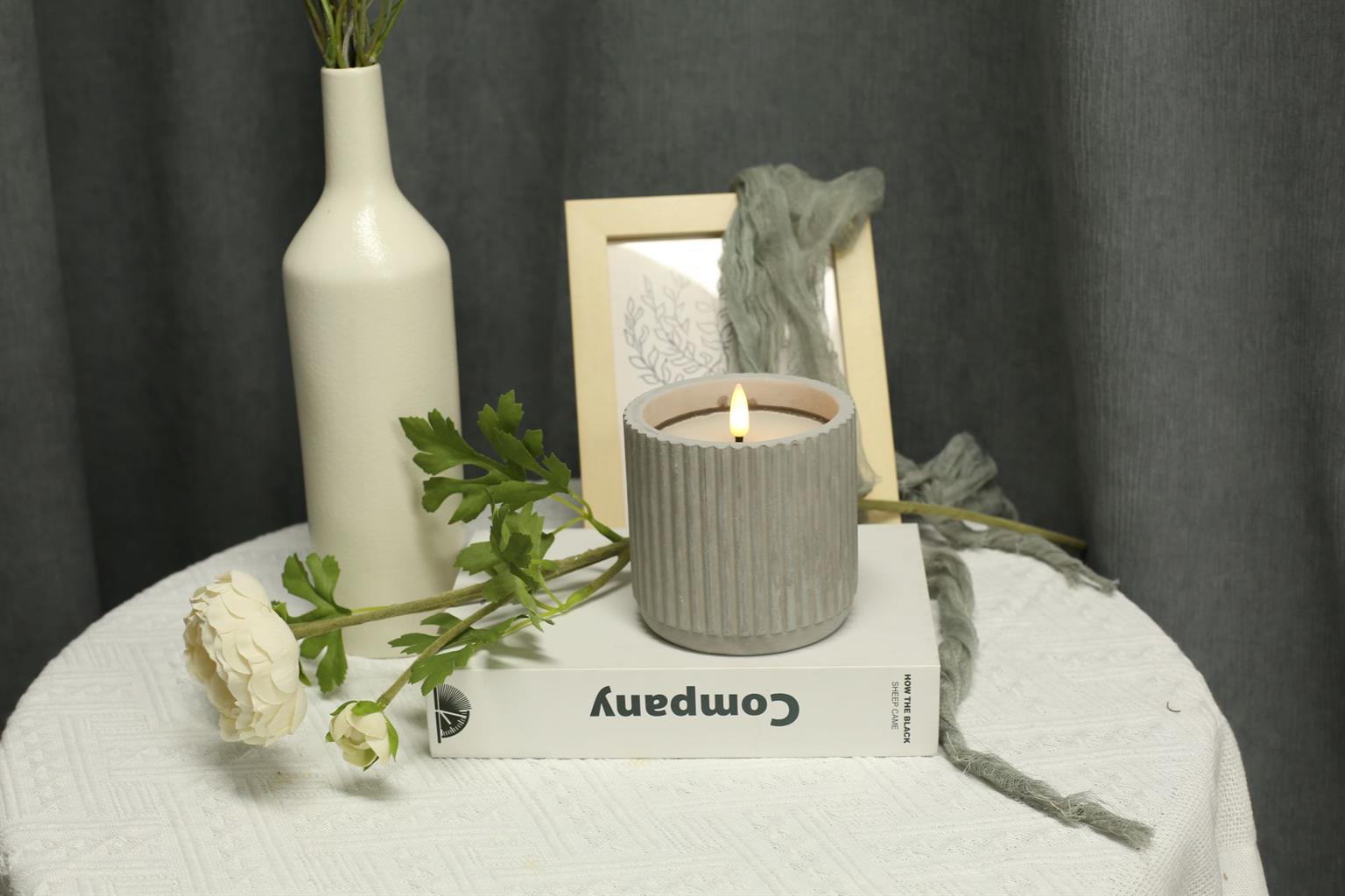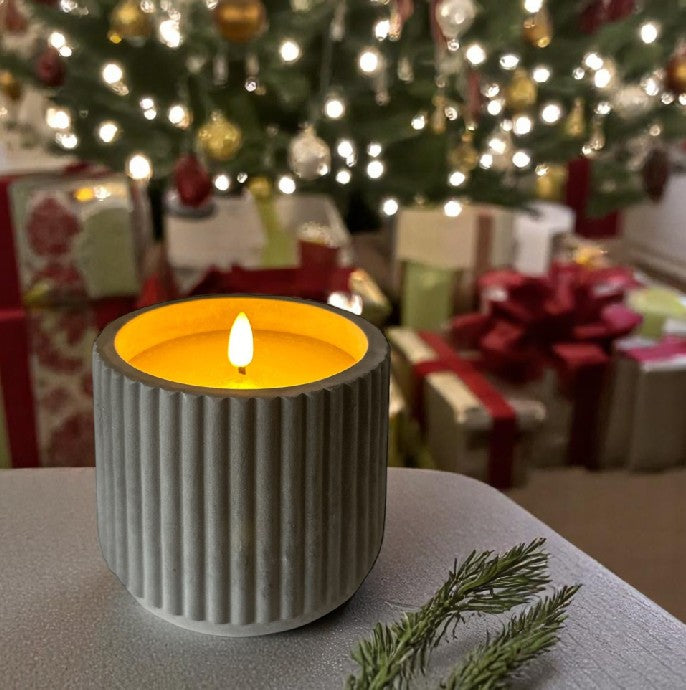 LED Wachskerze im Zement Topf warm weisses flackerndes Licht D10cm H 9.5cm