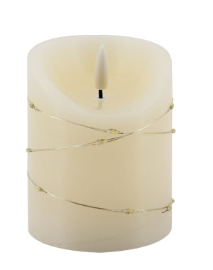 Bougie en cire LED blanche rustique avec flamme mobile P:9cm - H:23cm