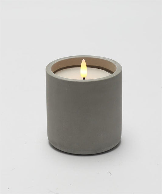 LED Wachskerze im ZementTopf warm weisses flackerndes Licht D9.5cm H10cm