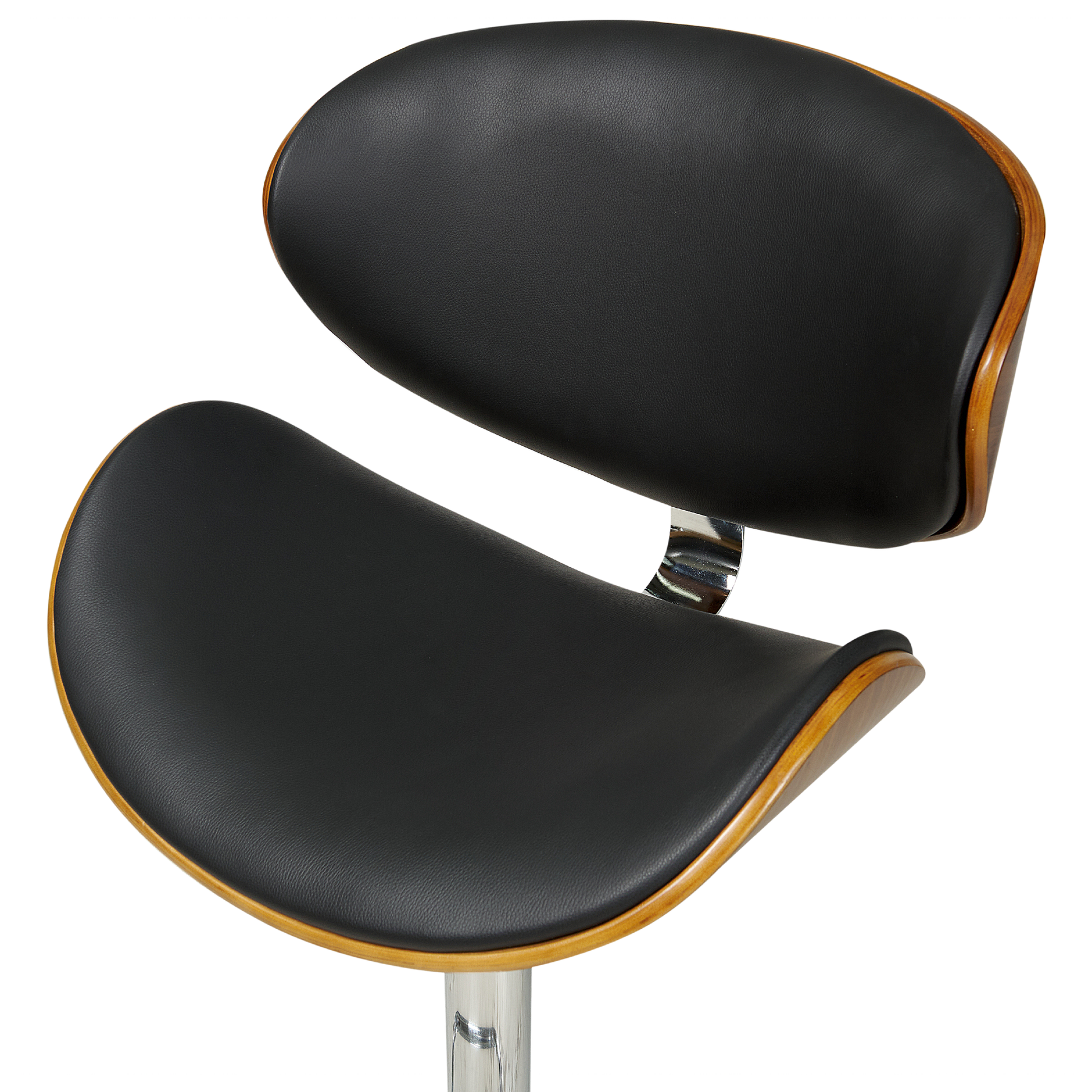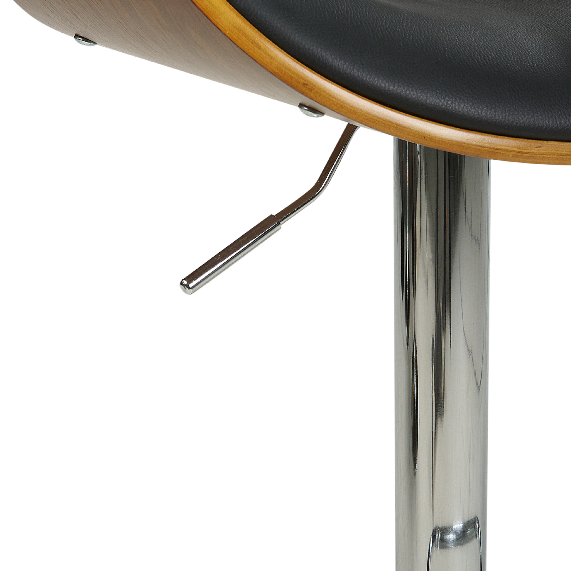 Der Klassiker unter den Barhockern! Die bequeme Polsterung aus schwarzem Kunstleder, die wunderschön geschwungene Sitzfläche und Rückenlehne aus lackiertem Sperrholz in einem warmen Braunton, eine breite und komfortable Fussstütze, und ein stabiles Gestell aus glänzendem Metall verleihen diesem Barstuhl seine zeitlose Eleganz. Mittels einer Gasdruckfeder lässt sich die Sitzhöhe beliebig einstellen. Der um 360° frei drehbarer Barstuhl ist eine gelungene Kombination aus optimalem Sitzkomfort, pflegeleichtem, robustem Material, solider Verarbeitung und ansprechendem Design!  Material: Kunstleder. Zusätzliches Material: Sperrholz, Eisen.  Material Zusammensetzung: 100% Kunstleder Gewicht: 9 Montage: Beine / Füsse nicht montiert Gewichtskapazität: 130 Sitzhöhe: 61-82 Das Angebot beinhaltet: 1 x Barstuhl Sitzfläche: 52x39 Höhe: 93-115 zusätzliche Information: Um sicherzustellen, dass die Konstruktion stabil und die Nutzungssicherheit gewährleistet ist, sollte man 2 Wochen nach dem Zusammenbau überprüfen, ob die Ware auch korrekt montiert wurde. Ausserdem ist alle 3 Monate zu prüfen, ob die Schrauben richtig festgezogen sind. Breite: 52 Tiefe: 45 Art: Barhocker Stil: Retro Allgemeine Farbe: Schwarz Hauptmaterial: Kunstleder