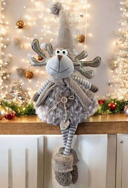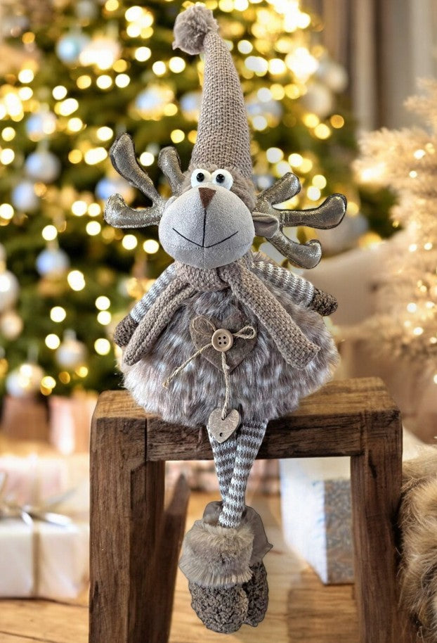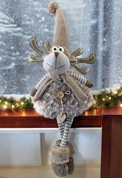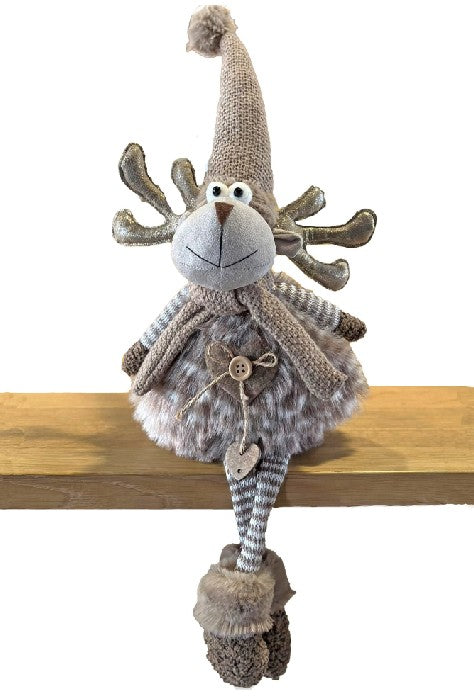 Deko Elch Kantenhocker braun weiss mit Schal und Mütze