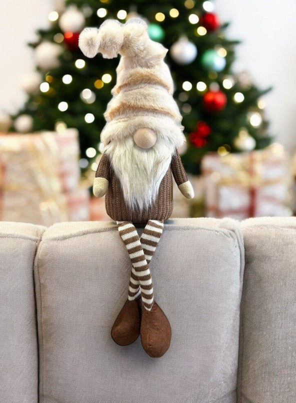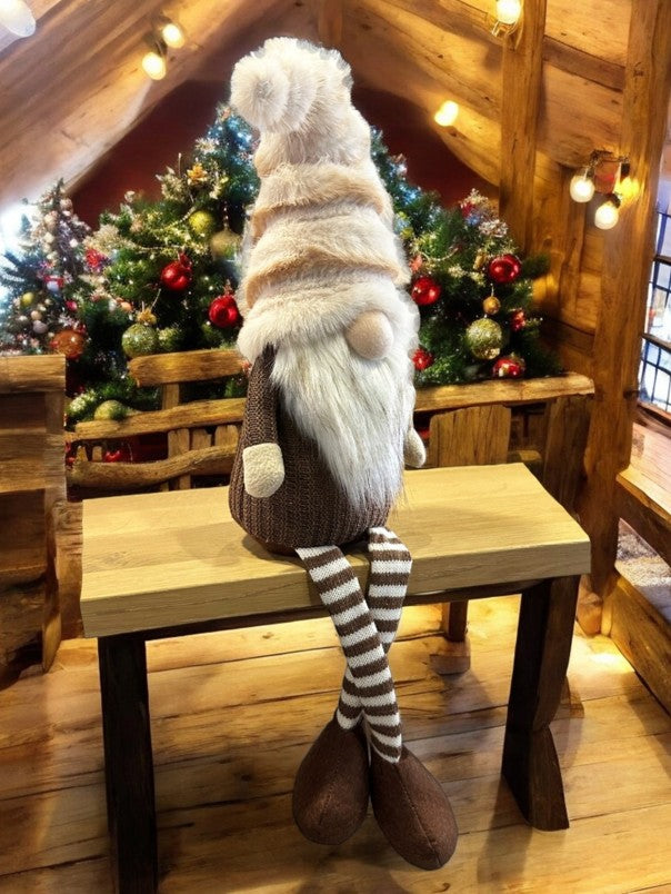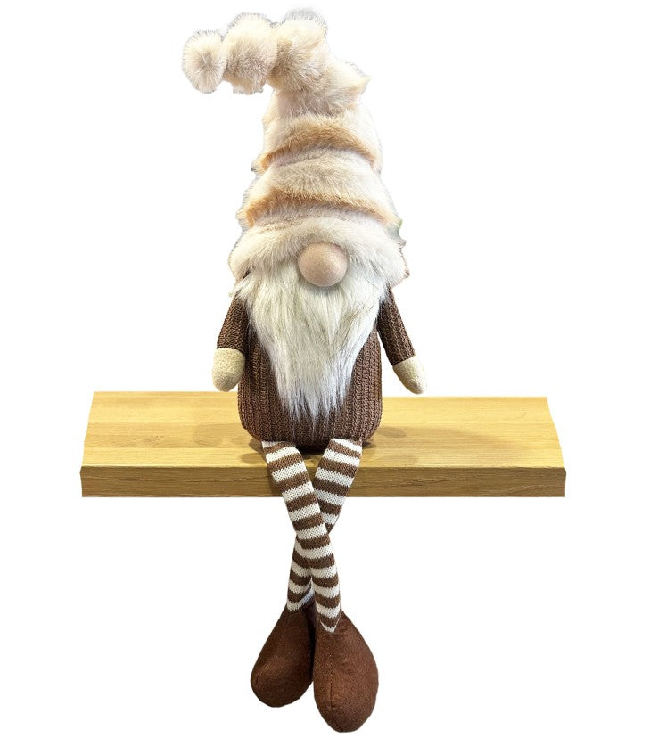 Deko Wichtel Kantenhocker braun weiss mit flauschiger Mütze braun weiss
