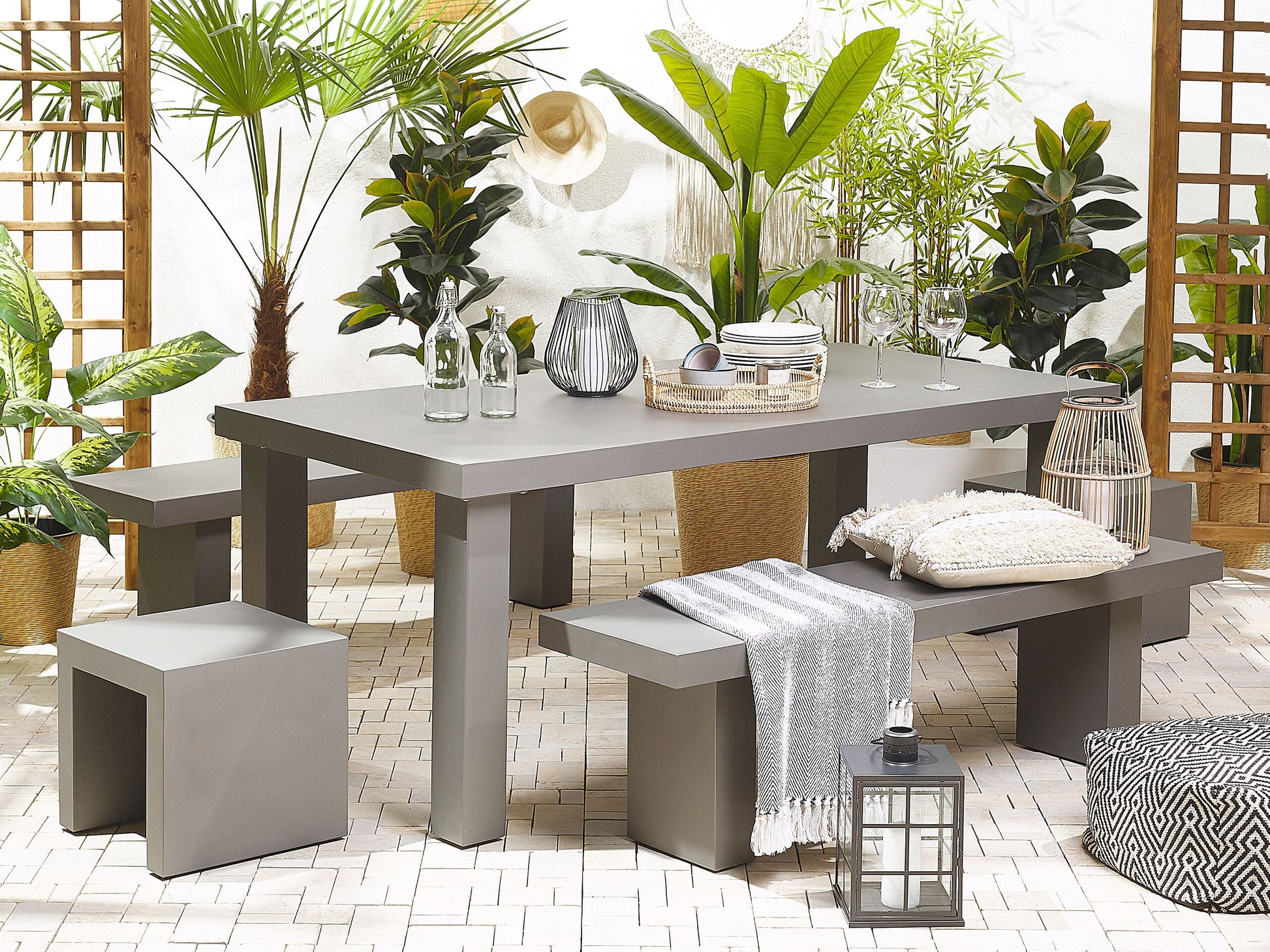 Gartenmöbel Set mit Bänken und Hockern 6-Sitzer TARANTO Beton Grau