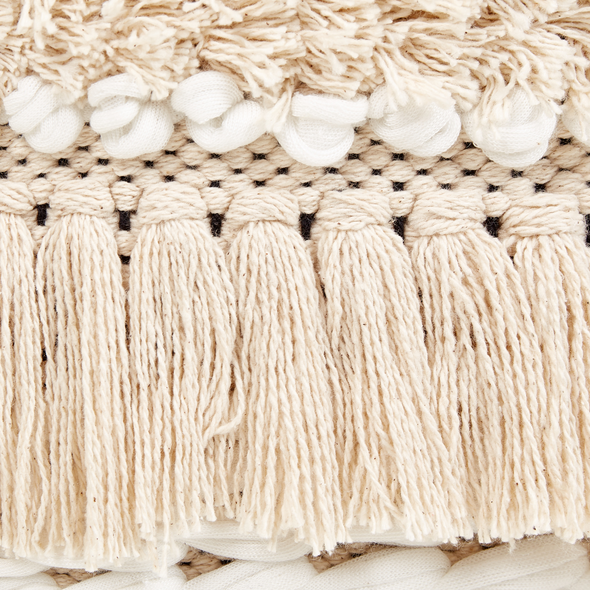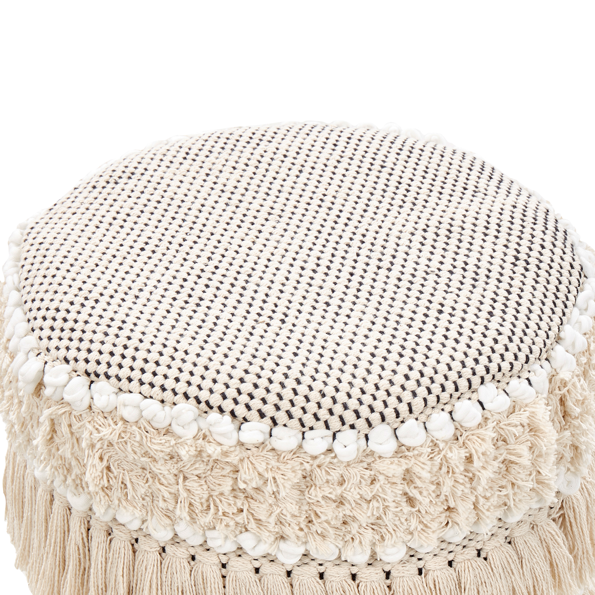 Sitzkomfort, wunderschöner Look im rustikalen Boho-Design und Fertigung aus hochwertiger Baumwolle - dieser Sitzhocker bietet alles was das Herz begehrt. Verleihen Sie Ihrem Interieur mit diesem Produkt eine einzigartige Atmosphäre!  Material: Baumwolle. Zusätzliches Material: Eukalyptus.  Material Zusammensetzung: 100% Baumwolle Gewicht: 3 Montage: Benötigt keine Montage Holzart: Eucalyptus grandis Holzursprung: Indien Gewichtskapazität: 120 Beine Höhe: 17 Das Angebot beinhaltet: 1 x Hocker Sitzfläche: 33x33 Höhe: 44 Gestalten: Rund Breite: 33 Tiefe: 33 Art: Hocker Stil: Retro Allgemeine Farbe: Beige Muster: Kein Muster Hauptmaterial: Baumwolle
