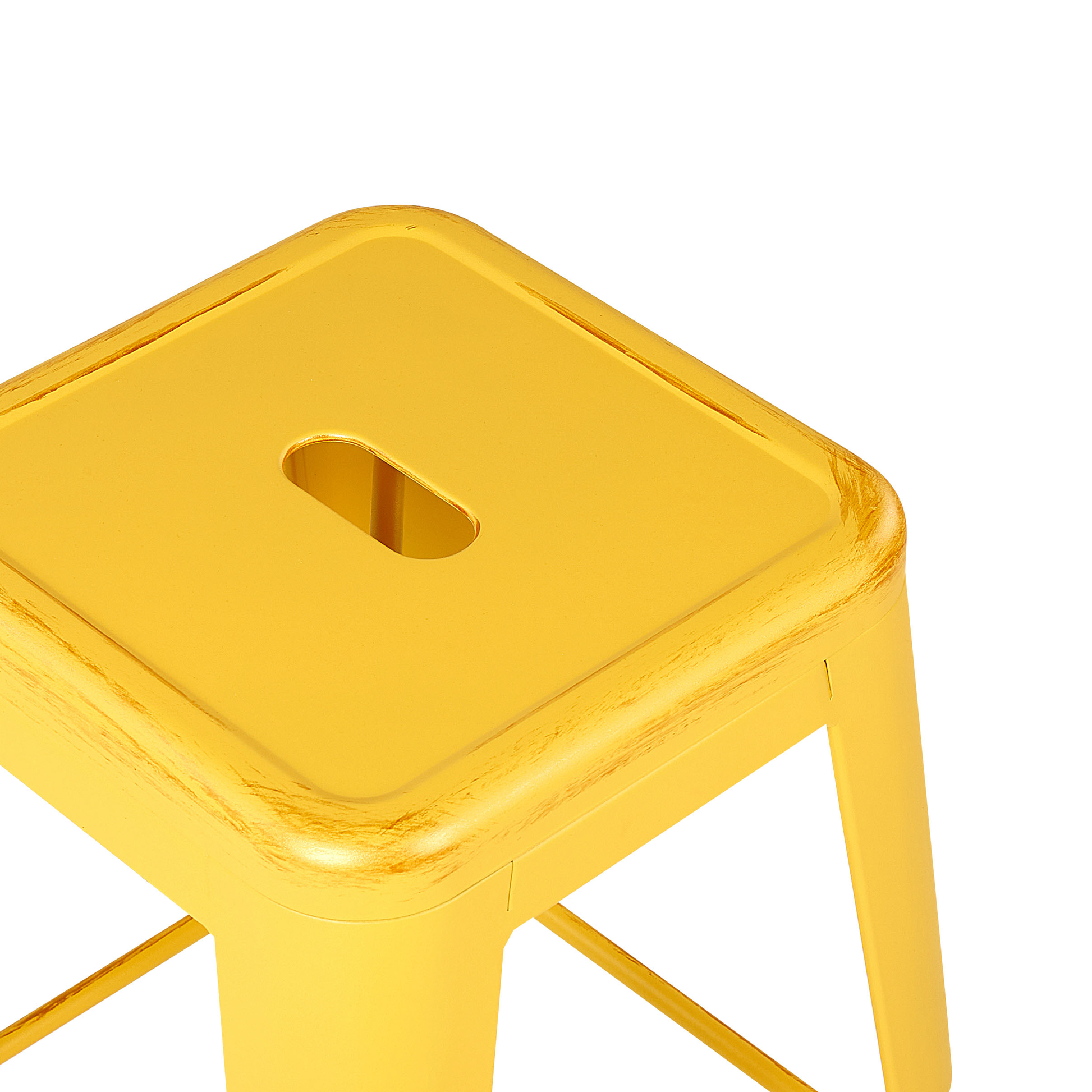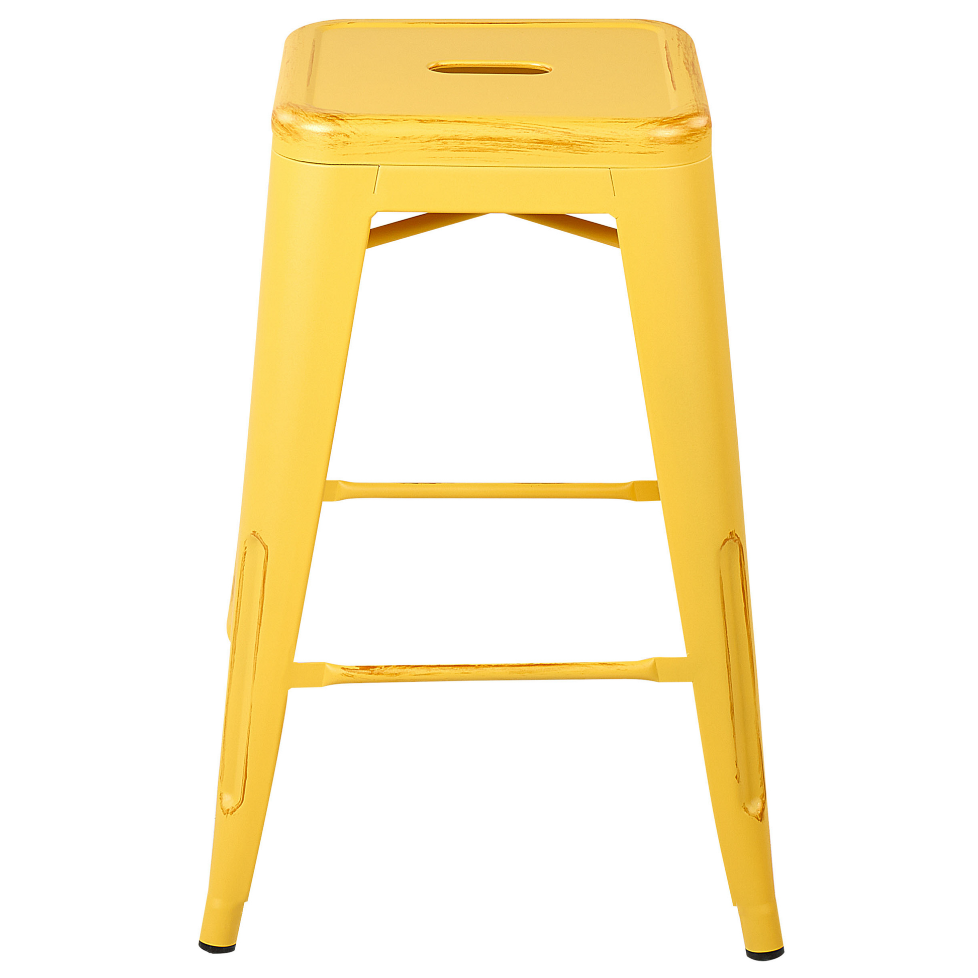 Bequem, praktisch und trendy - diese Barhocker sind richtig coole Wohnaccessoires! Modernstes Design kombiniert mit funktioneller Formgebung aus pulverbeschichtetem, pflegeleichtem Stahl. Kunststoffnoppen schonen Ihren Fussboden und bieten einen rutschfesten Stand, und die Querstreben auf allen vier Seiten dienen als komfortable Fussstützen.  Material: Stahl. Gewicht: 5 Montage: Benötigt keine Montage Gewichtskapazität: 130 Sitzhöhe: 60 Das Angebot beinhaltet: 2 x Hocker Sitzfläche: 30x30 Höhe: 60 Breite: 42 Tiefe: 42 Art: Set mit 2 Barhockern Stil: Modern Allgemeine Farbe: Gelb Hauptmaterial: Stahl