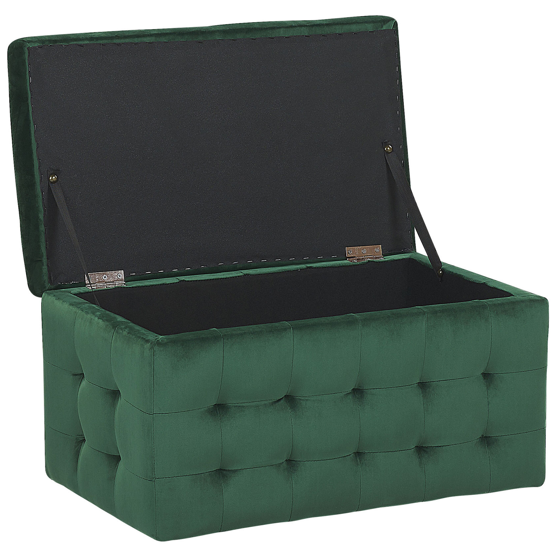 Diese Truhe wird Sie begeistern mit ihrer eleganten Ausstrahlung und grossen Funktionalität. Sie ist vielseitig nutzbar als zusätzliche Sitz- oder als Fussbank passend zum Sofa, als Bettbank oder als schnelle Sitzgelegenheit im Eingangsbereich, wo sie gleichzeitig Handtaschen, Wollmützen und vieles mehr verstauen können. Die stabile Konstruktion aus Holz ist mit Samt bezogen und dadurch sowohl schick als auch sehr bequem.  Material: Samtstoff. Zusätzliches Material: Polyester, Kunststoff.  Material Zusammensetzung: 100% Polyester Gewicht: 8 Montage: Benötigt keine Montage Gewichtskapazität: 120 Das Angebot beinhaltet: 1 x Ottomane Sitzfläche: 72x42 Höhe: 40 zusätzliche Information: Bitte beachten Sie, dass Samtstoff unter verschiedenen Lichtverhältnissen eine andere Optik haben kann – das Material schimmert bei Tageslicht stärker und wirkt bei künstlicher Beleuchtung in Innenräumen eher gedämpft. Aufgrund der glatten, hochdichten Struktur des Gewebes kann sein Farbton auch variieren, wenn man mit der Hand in verschiedene Richtungen und Winkel über den Stoff fährt. Um den Farbton auszugleichen und Druckstellen zu vermeiden, sollte der Webstoff sanft mit einer offenen Handfläche in eine Richtung gestrichen, mit einem feuchten Tuch abgewischt oder einem Dampfbügeleisen gebügelt werden. Gestalten: Rechteckig Breite: 72 Tiefe: 42 Art: Aufbewahrungshocker Stil: Glamourös Allgemeine Farbe: Grün Schatten: Dunkelgrün Muster: Ohne Muster Hauptmaterial: Samtstoff Füllmaterial: Schaumstoff