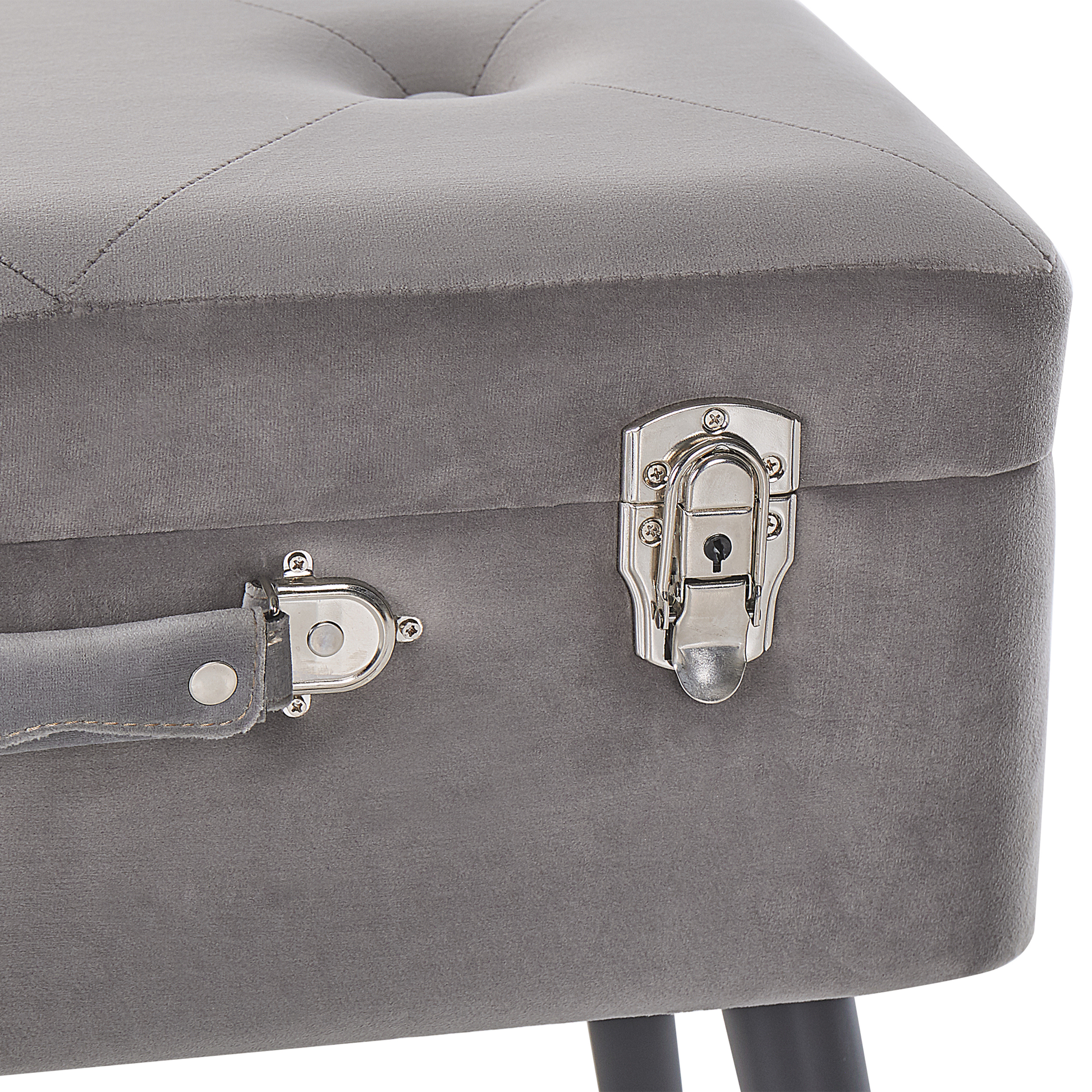 Hocker mit Stauraum Samtstoff hellgrau Koffer-Design MALLARD