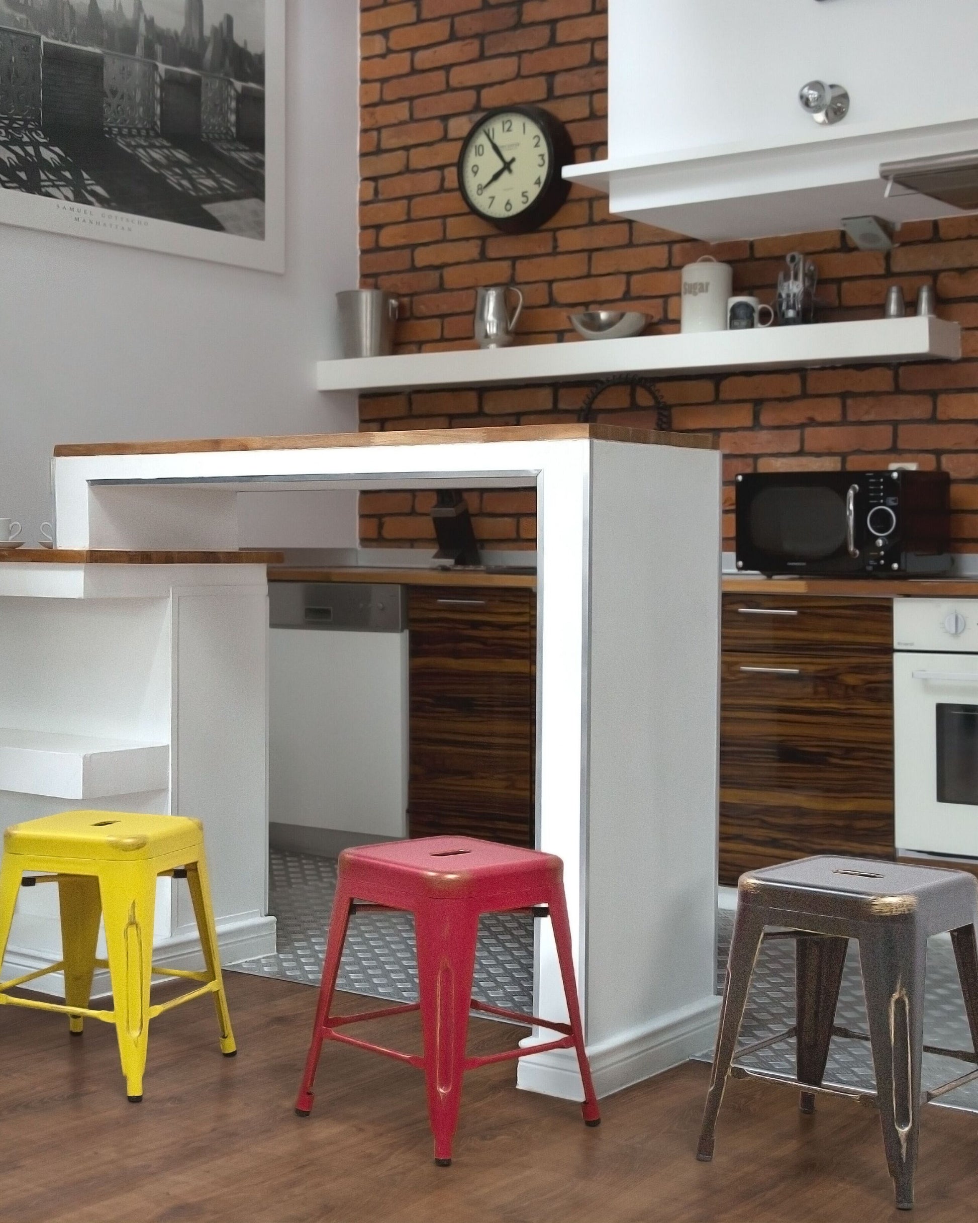 Bequem, praktisch und trendy - diese Barhocker sind richtig coole Wohnaccessoires! Modernstes Design kombiniert mit funktioneller Formgebung aus pulverbeschichtetem, pflegeleichtem Stahl. Kunststoffnoppen schonen Ihren Fussboden und bieten einen rutschfesten Stand, und die Querstreben auf allen vier Seiten dienen als komfortable Fussstützen.  Material: Stahl. Gewicht: 5 Montage: Benötigt keine Montage Gewichtskapazität: 130 Sitzhöhe: 60 Das Angebot beinhaltet: 2 x Hocker Sitzfläche: 30x30 Höhe: 60 Breite: 42 Tiefe: 42 Art: Set mit 2 Barhockern Stil: Industriell Allgemeine Farbe: Schwarz Hauptmaterial: Stahl