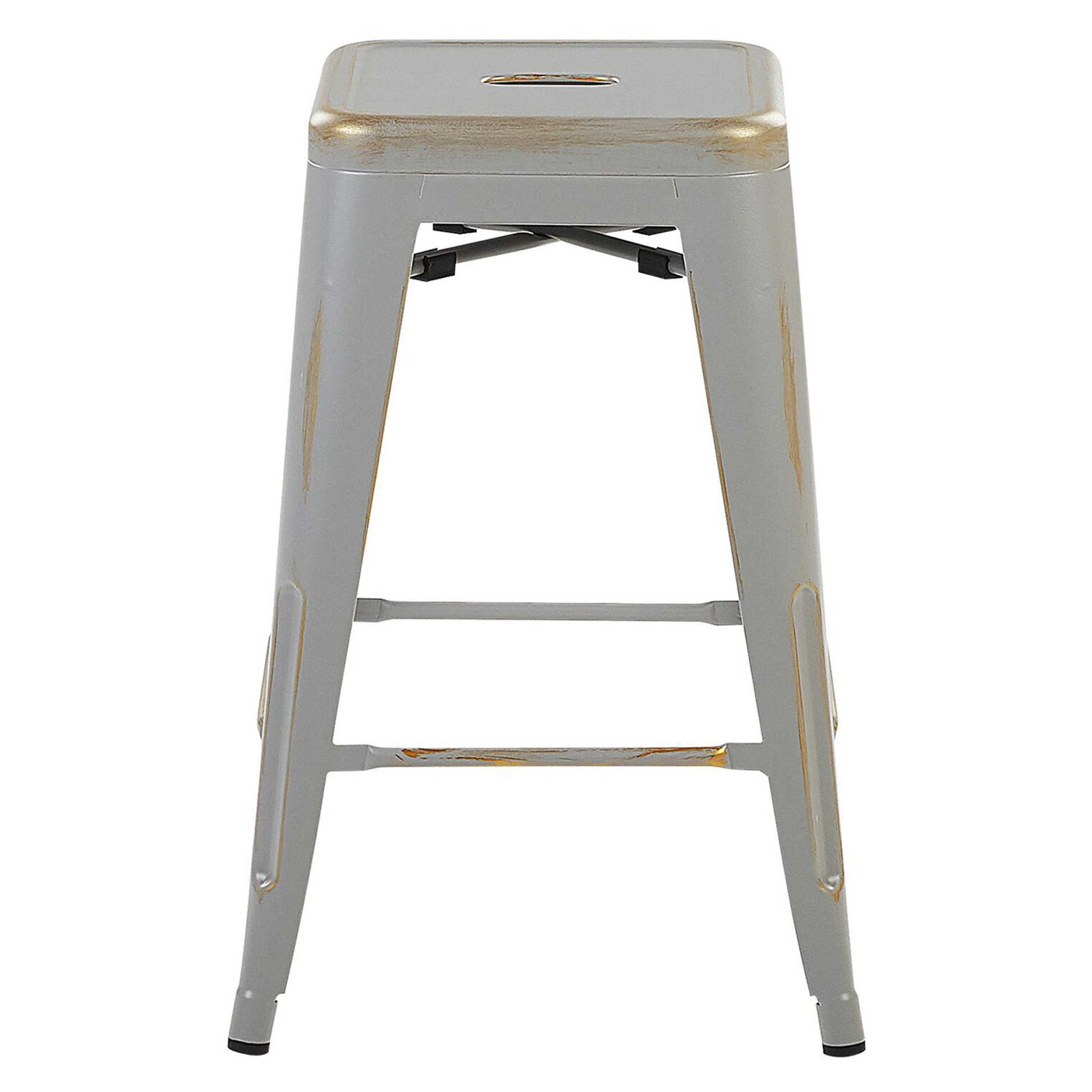 Bequem, praktisch und trendy - diese Barhocker sind richtig coole Wohnaccessoires! Modernstes Design kombiniert mit funktioneller Formgebung aus pulverbeschichtetem, pflegeleichtem Stahl. Kunststoffnoppen schonen Ihren Fussboden und bieten einen rutschfesten Stand, und die Querstreben auf allen vier Seiten dienen als komfortable Fussstützen.  Material: Stahl. Gewicht: 5 Montage: Benötigt keine Montage Gewichtskapazität: 130 Sitzhöhe: 60 Das Angebot beinhaltet: 2 x Hocker Sitzfläche: 30x30 Höhe: 60 Breite: 42 Tiefe: 42 Art: Set mit 2 Barhockern Stil: Modern Allgemeine Farbe: Silber Hauptmaterial: Stahl
