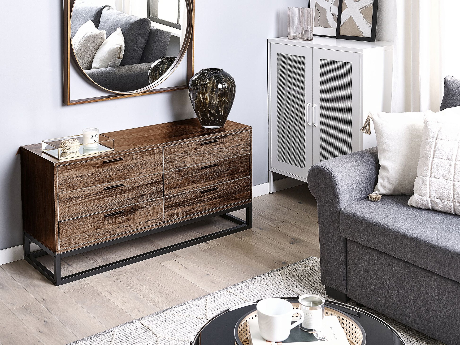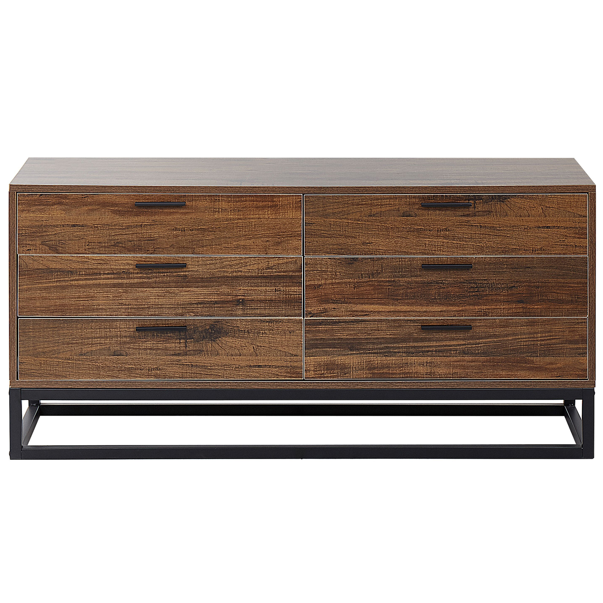 Kommode dunkler Holzfarbton / schwarz 6 Schubladen DELTA