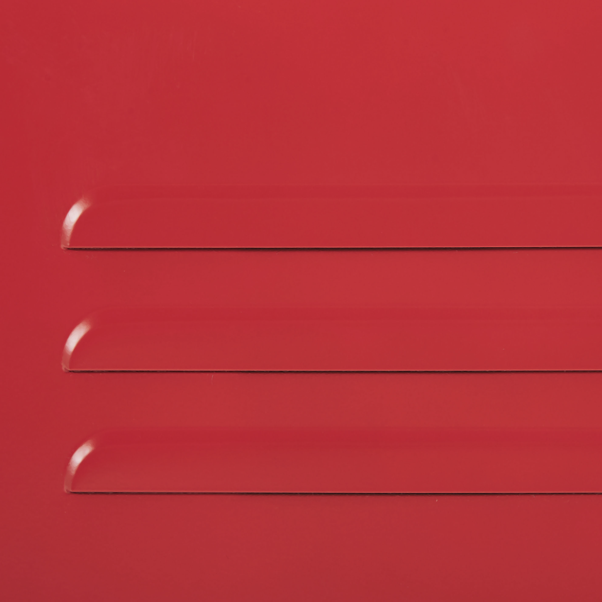 Das Modell ist mit 4 praktischen Schubladen versehen in denen Sie Kleinteile, Werkzeug, Büromaterial und vieles mehr Blickdicht versteckt, dennoch sofort griffbereit halten werden. Der Korpus besteht aus robustem, kaltgewalztem Metall, wodurch der Schrank besonders langlebig ist. Die hochwertige Pulverbeschichtung macht die Oberflächen pflegeleicht und verstärkt dabei die Korrosionsbeständigkeit des Möbelstücks. Die schmalen Öffnungen an den Fronten sorgen für eine entsprechende Luftzufuhr, so bleiben Ihre Kleidungsstücke immer schön frisch. Material: Stahl. Gewicht: 30 Montage: Nicht montiert Beine Höhe: 15 Das Angebot beinhaltet: 1 x Kommode Höhe: 102 Breite: 80 Tiefe: 40 Art: Kommode Stil: Modern Allgemeine Farbe: Rot Hauptmaterial: Stahl