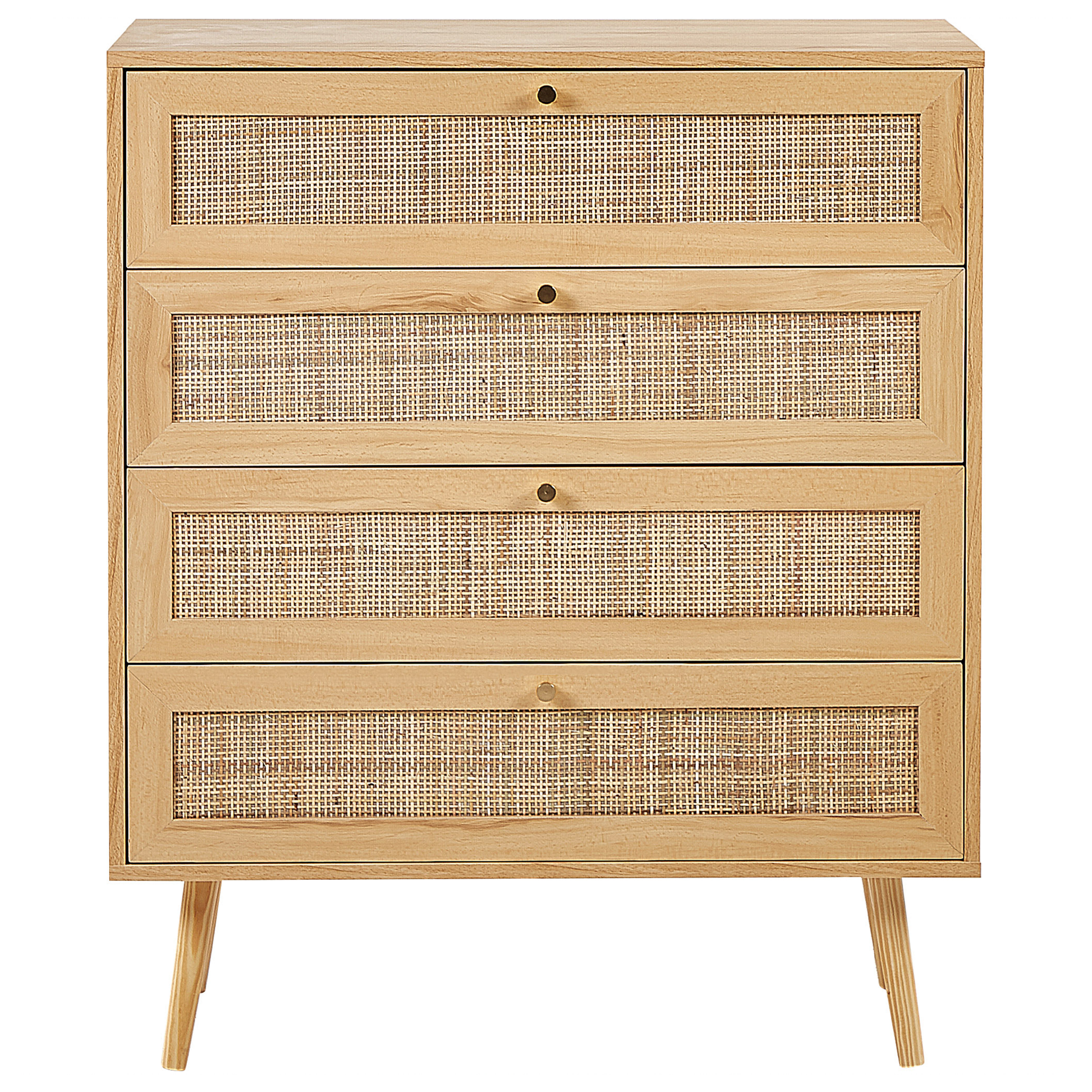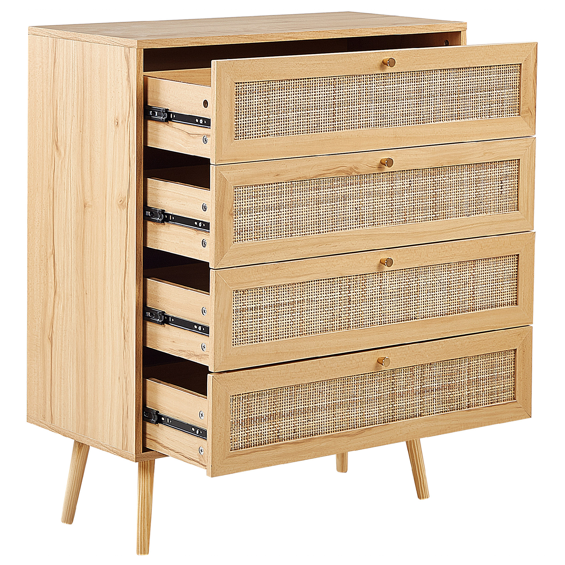 Kommode mit 4 Schubladen PEROTE Rattan 97 cm Holzoptik Hellbraun