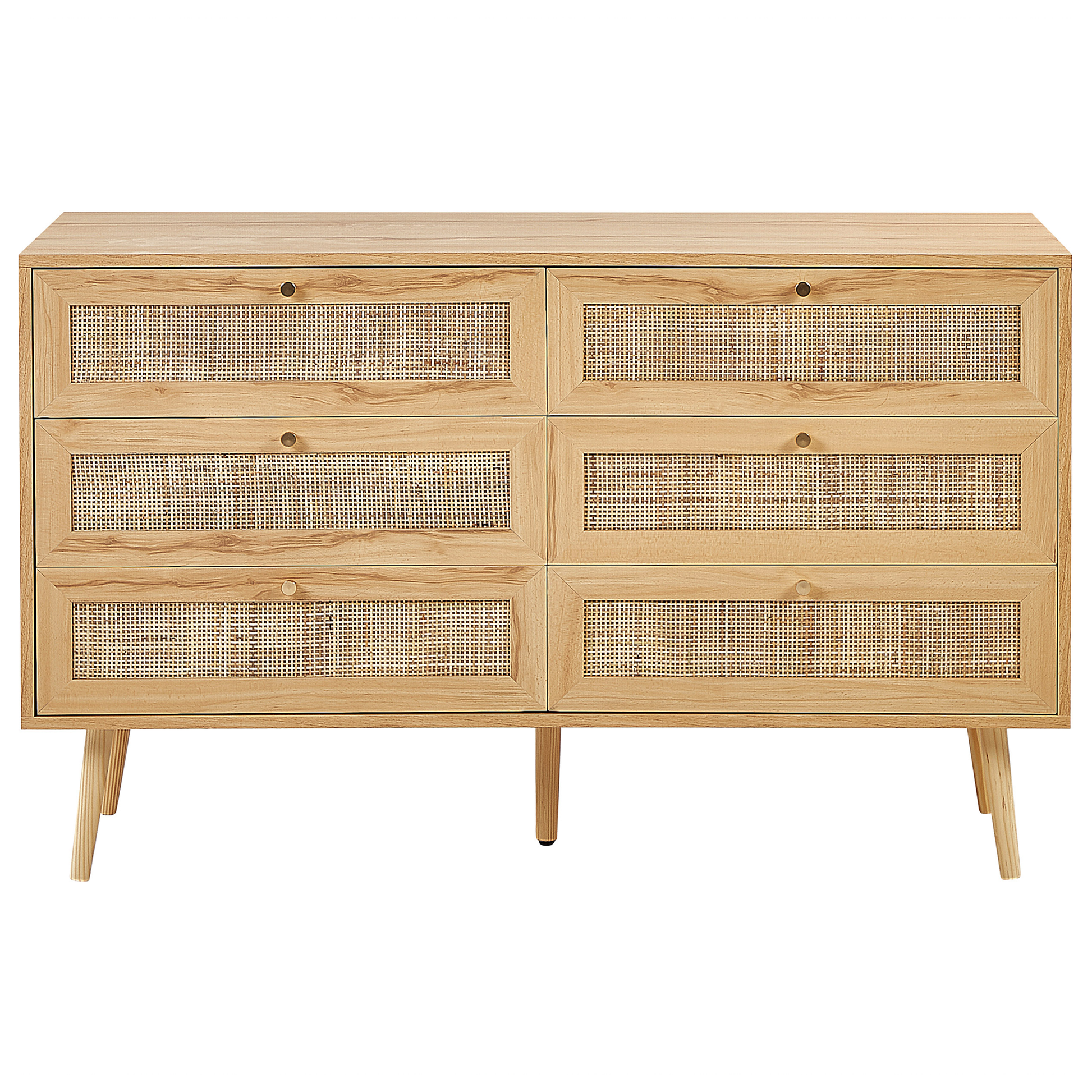 Kommode mit 6 Schubladen PEROTE Rattan 75 cm Holzoptik Hellbraun
