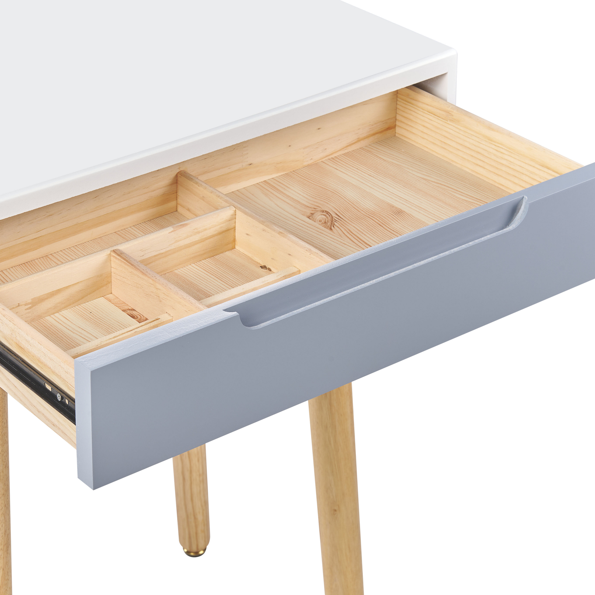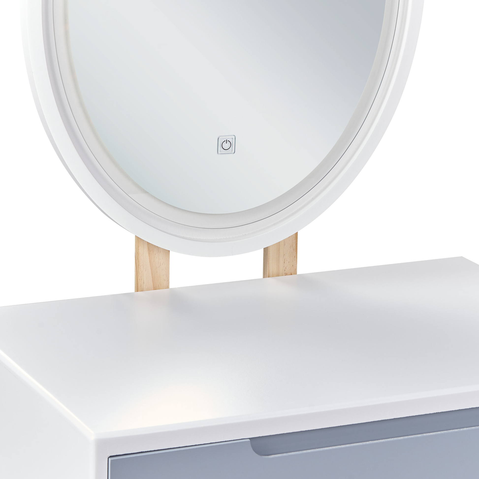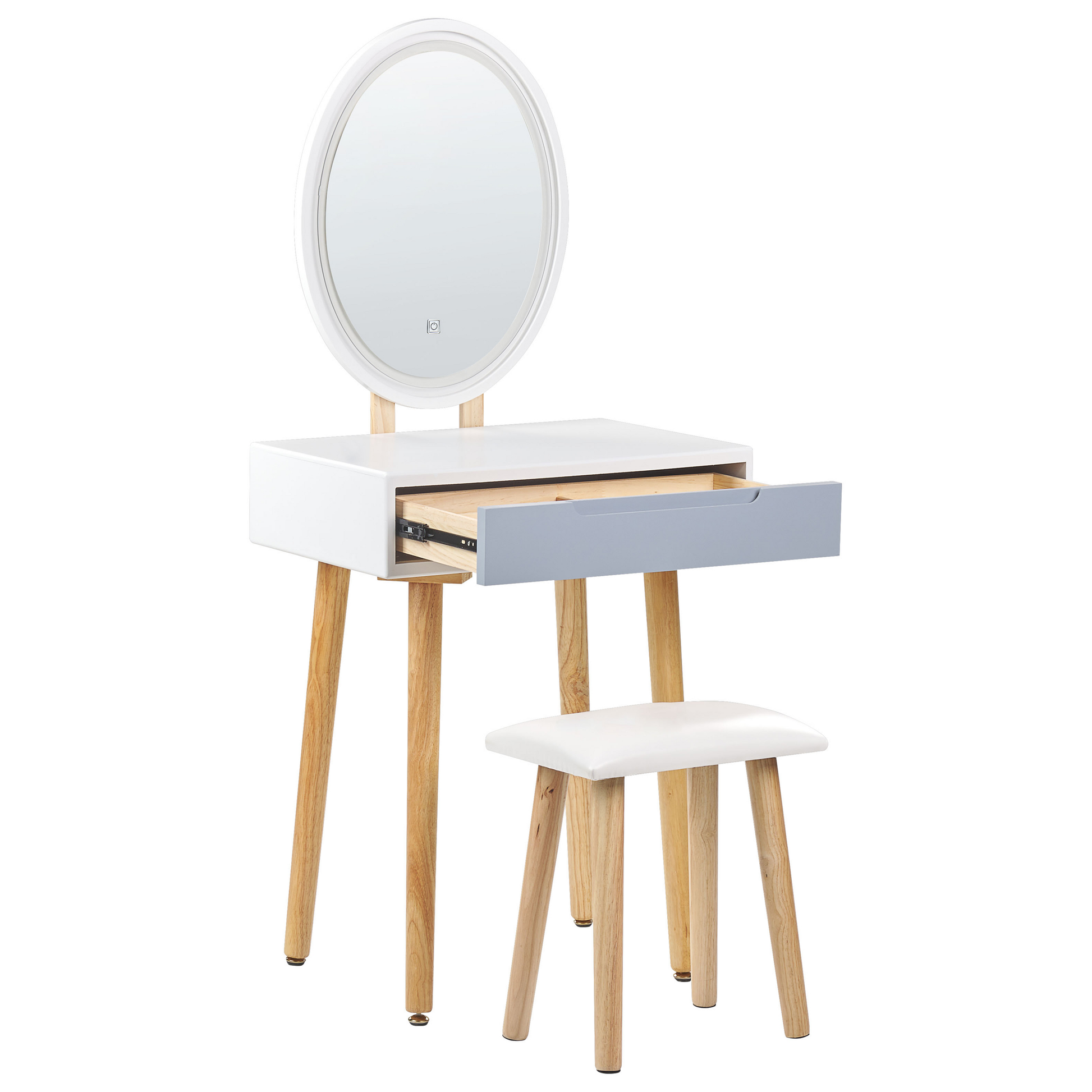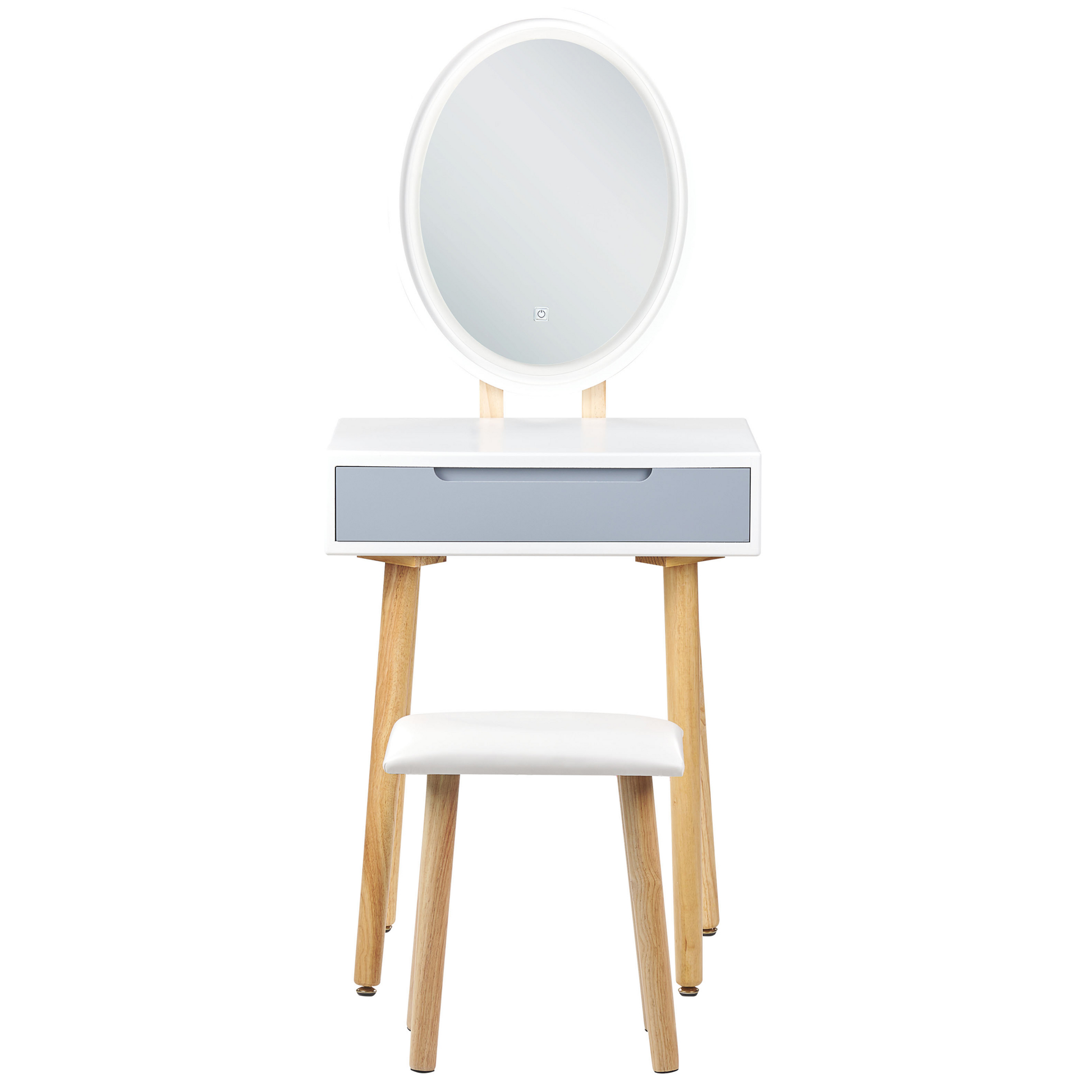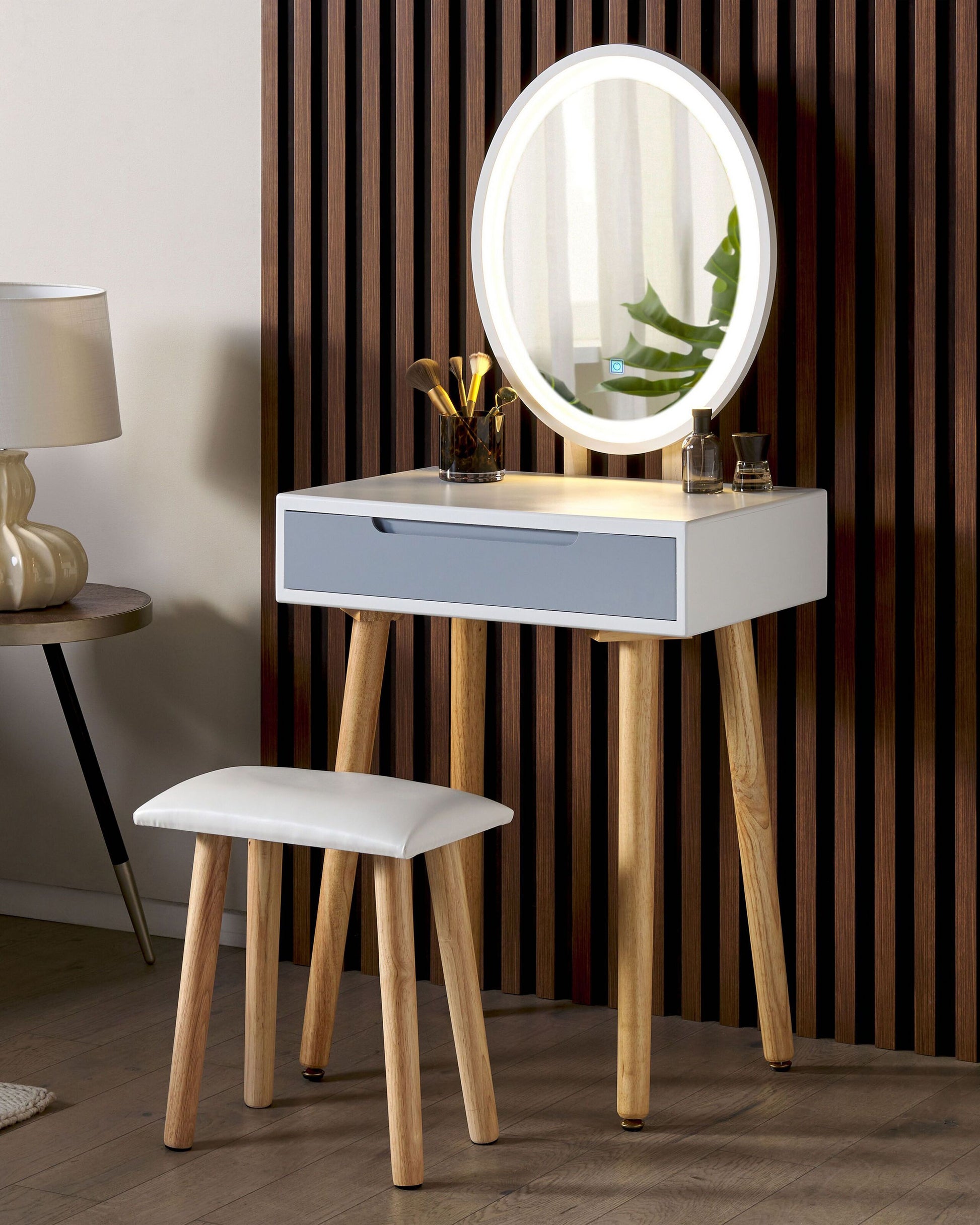 Schminktisch mit 1 Schublade, LED-Spiegel und Hocker weiss/grau VESOUL
