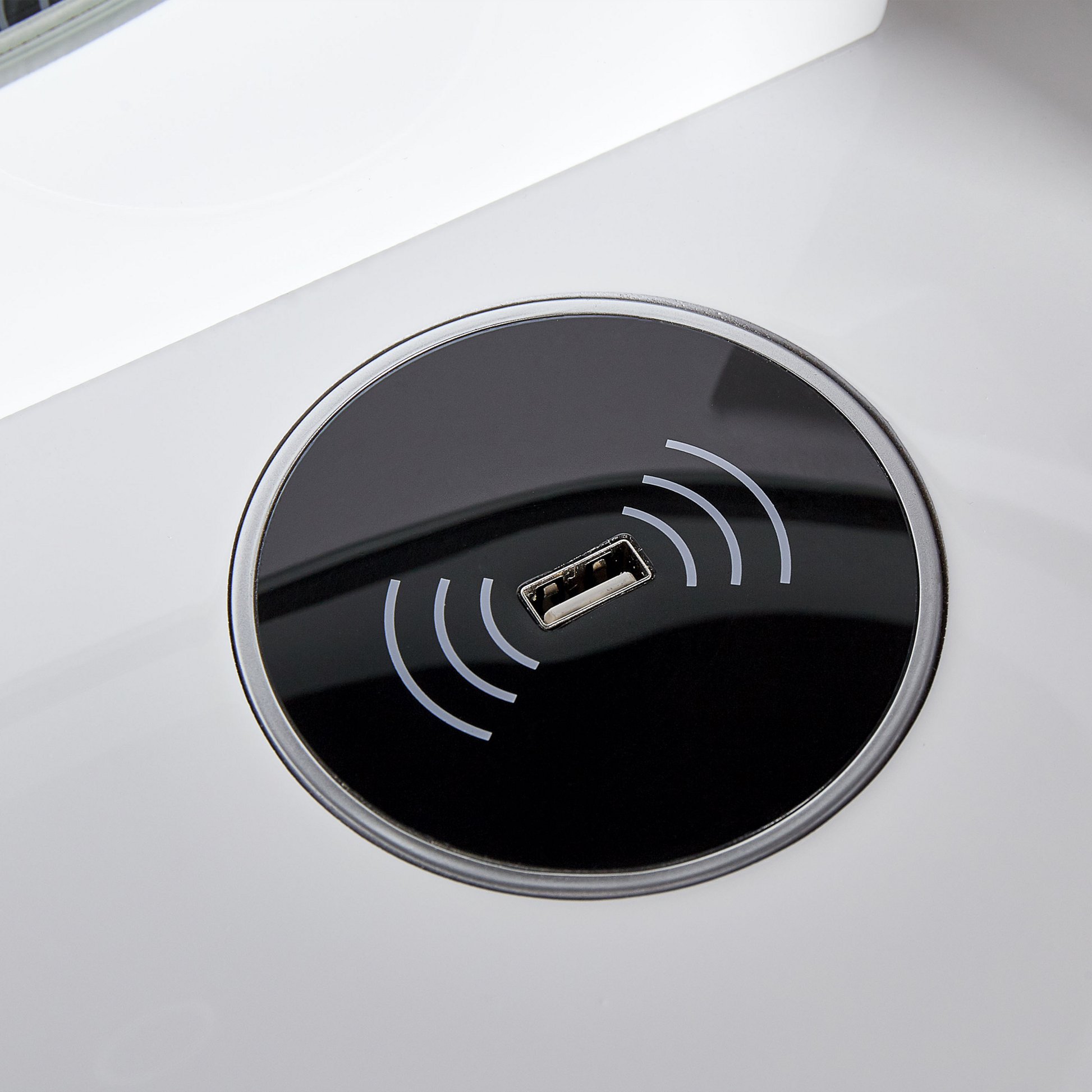 Nachdem Sie die fabelhaften Möglichkeiten dieses Frisiertischs entdecken, werden Sie Ihr Make-up auf keinem anderen Modell machen wollen. Die 4 geräumigen Schubladen des Spiegeltischs bieten reichlich Stauraum für Ihre unverzichtbaren Schönheitsprodukte und Accessoires. Der eingebaute Organizer in einer der Schubladen hilft Ihnen dabei, Ihren Schmuck zu ordnen. Der integrierte, ovale Spiegel verfügt über eine LED-Beleuchtung mit 3 praktischen Farbtemperaturmodi, auf diese Weise können Sie das Licht Ihren Bedürfnissen anpassen und sich bei jeder Gelegenheit präziese schminken. Das besondere an dem Modell: Die Schminkkommode besitzt einen USB-Anschluss auf der Tischplatte, so haben Sie Ihr Handy immer dabei, wenn Sie sich für die Arbeit oder ein Date zurechtmachen. Material: MDF-Platte. Zusätzliches Material: Glas, Polyester, Eisen. Material Zusammensetzung: 100% Polyester Gewicht: 26 Montage: Nicht montiert Gesamtabmessungen: 80x40x136 Beine Höhe: 62 Osmanische Dimensionen: 30x40x44 Das Angebot beinhaltet: 1 x Hocker, 1 x Schminktisch Höhe: 136 zusätzliche Information: Um die Haltbarkeit und die Ästhetik der Arbeitsplatte zu erhalten, sollte man Platzsets und Untersetzer verwenden und feuchte Stellen schnellstmöglich trocken wischen, um Produktschäden zu vermeiden. Breite: 80 Tiefe: 40 Art: Schminktisch mit Spiegel und Hocker Stil: Glamourös Allgemeine Farbe: Weiss Hauptmaterial: MDF-Platte LED Type: SMD 2835