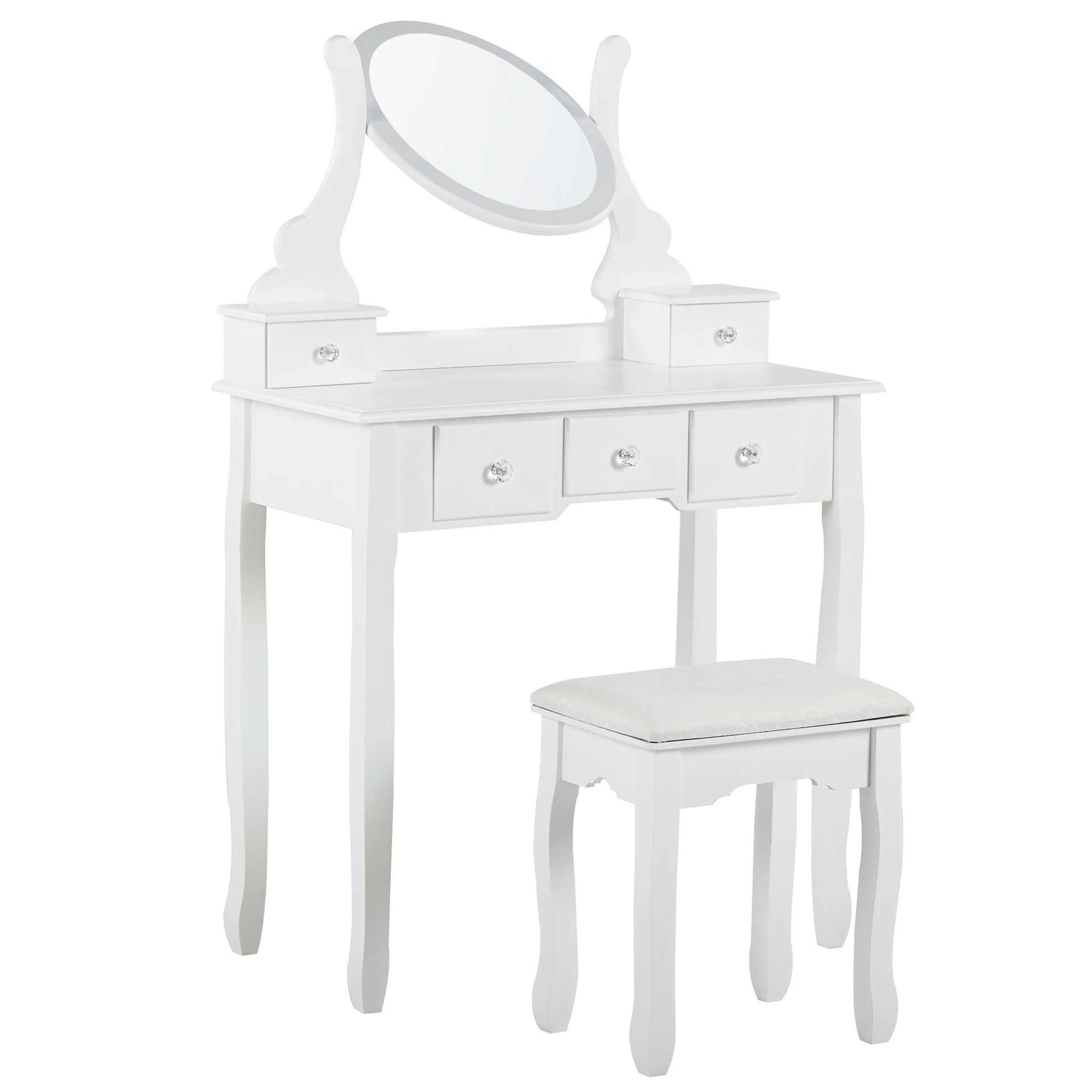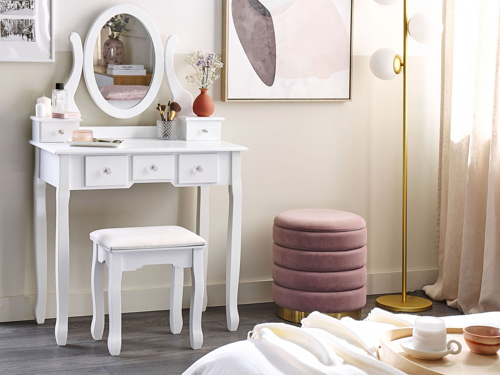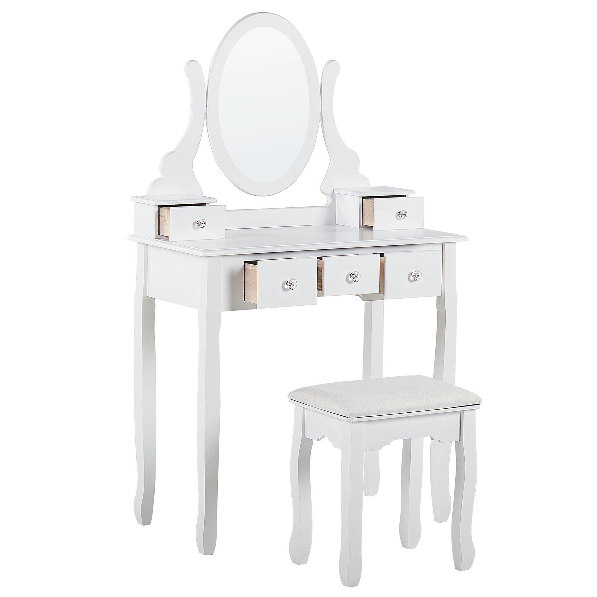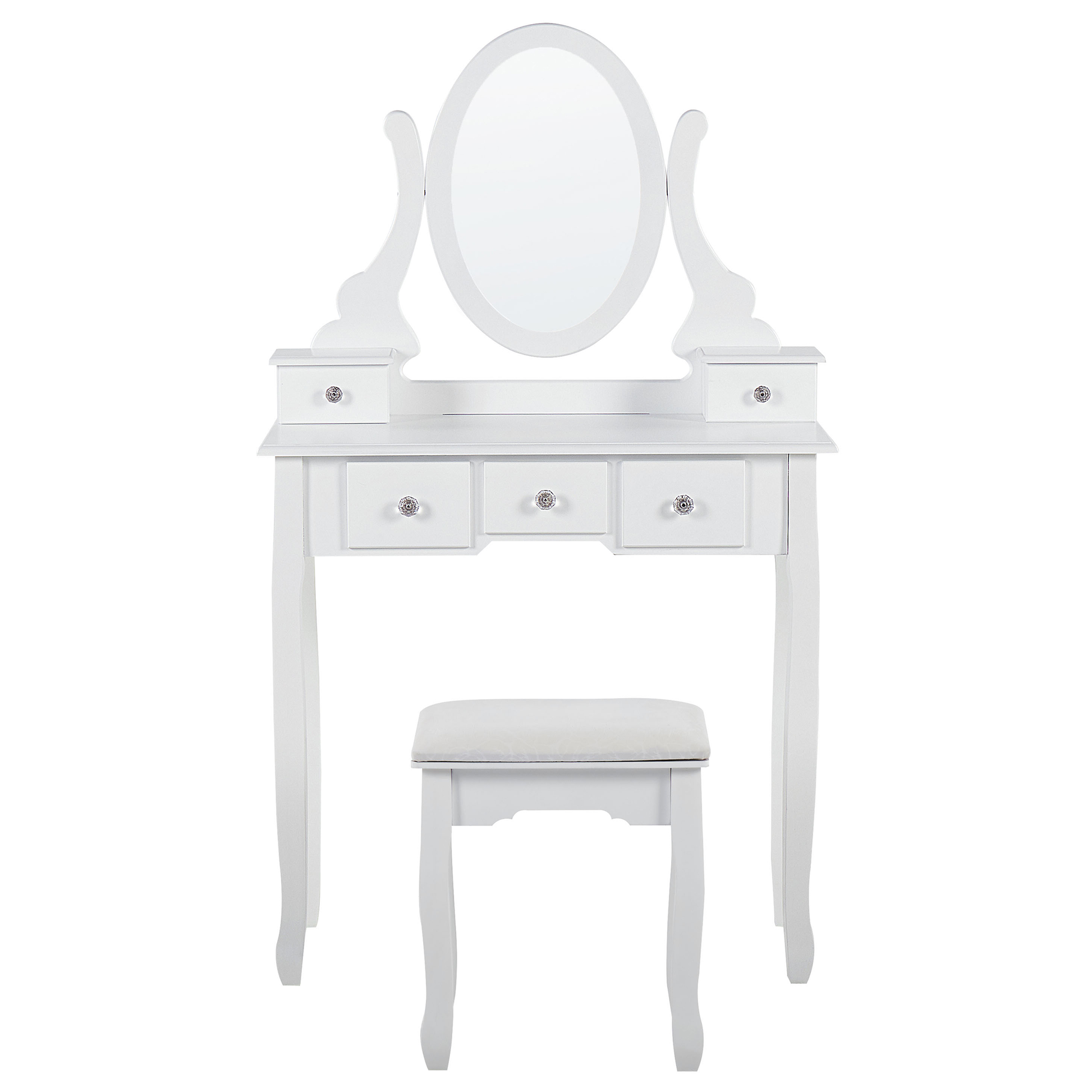 Schminktisch mit ovalem Spiegel Hocker 5 Schubladen weiss GALAXIE