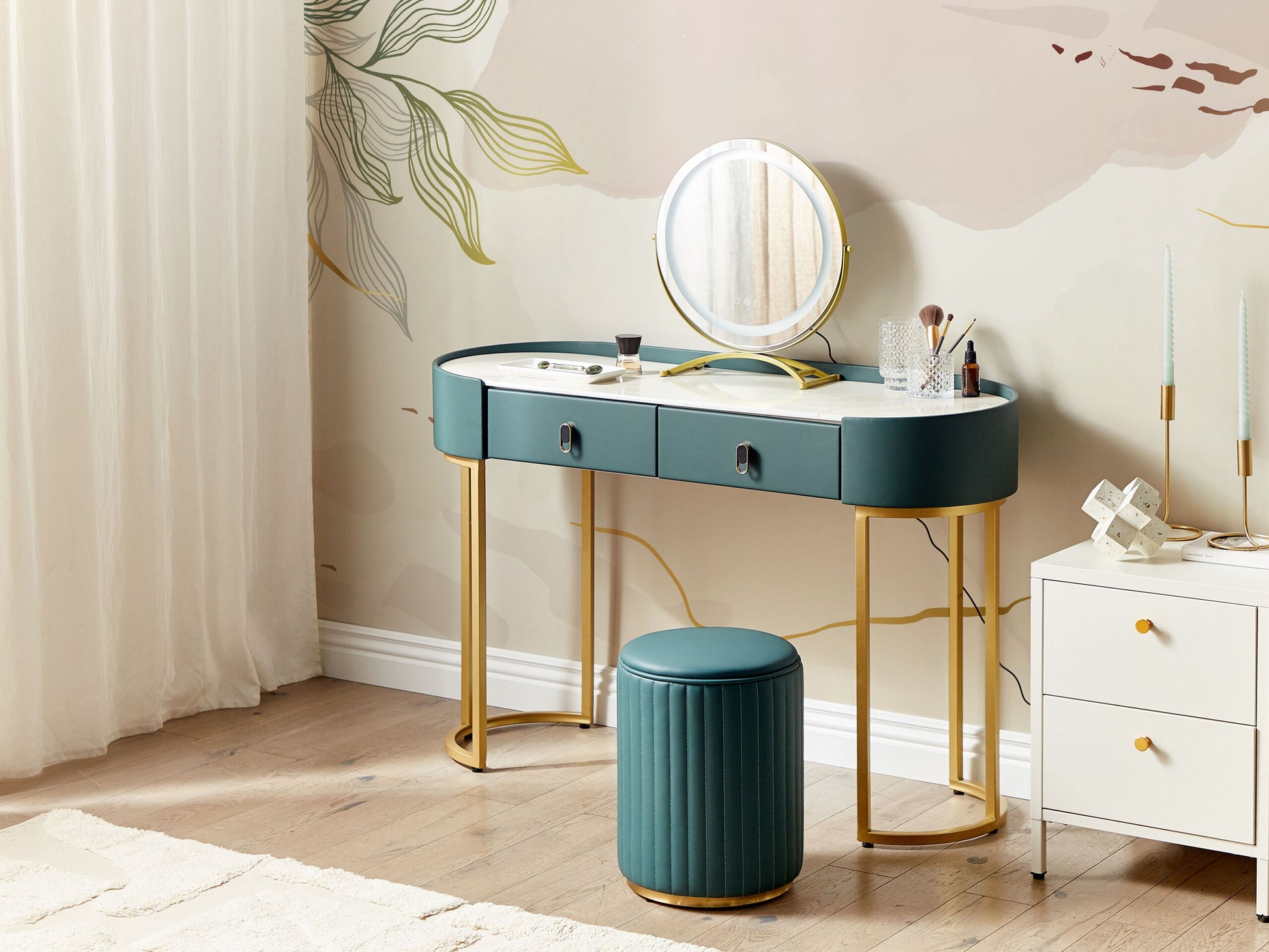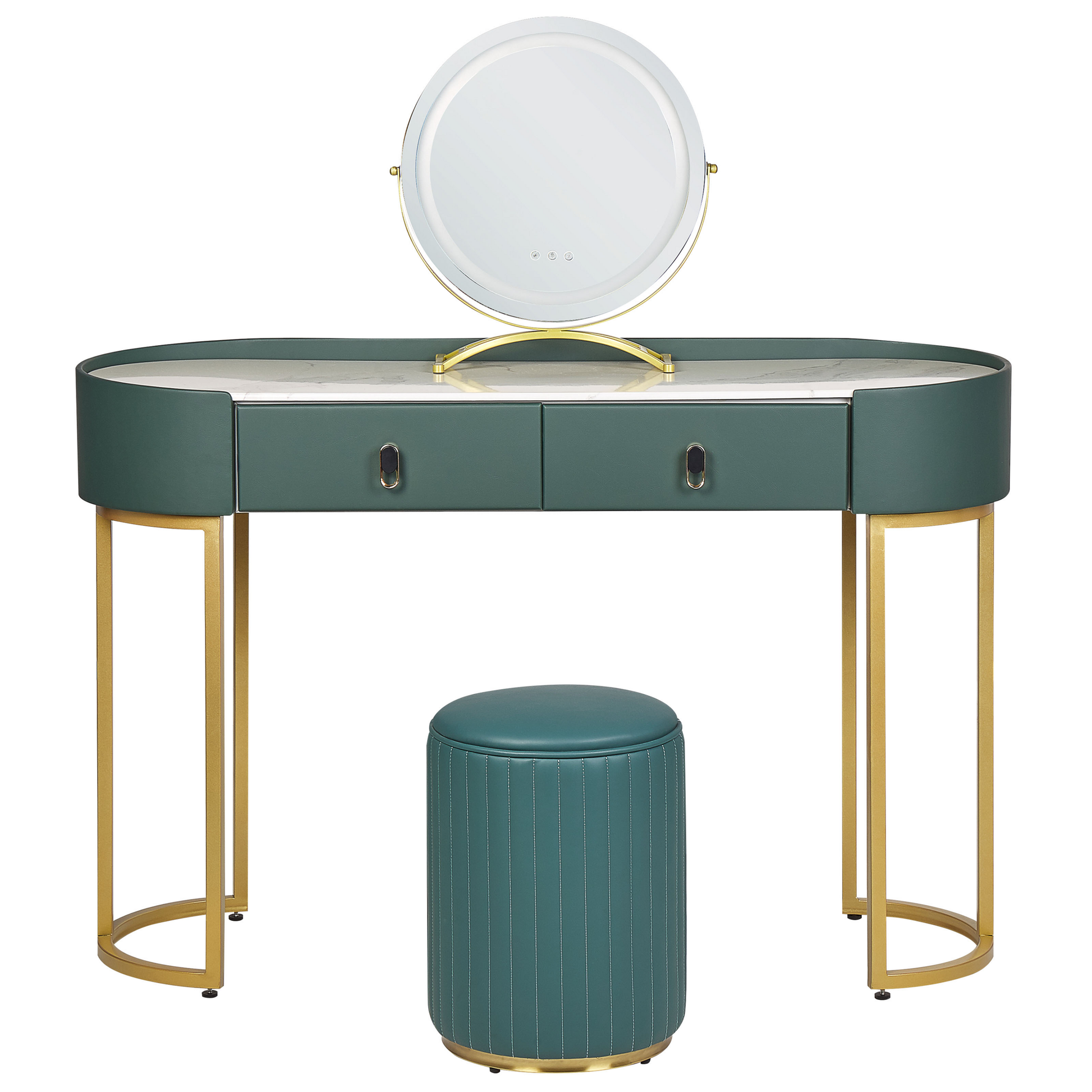 Schminktisch mit Spiegel und Hocker VINAX LED Dunkelgrün