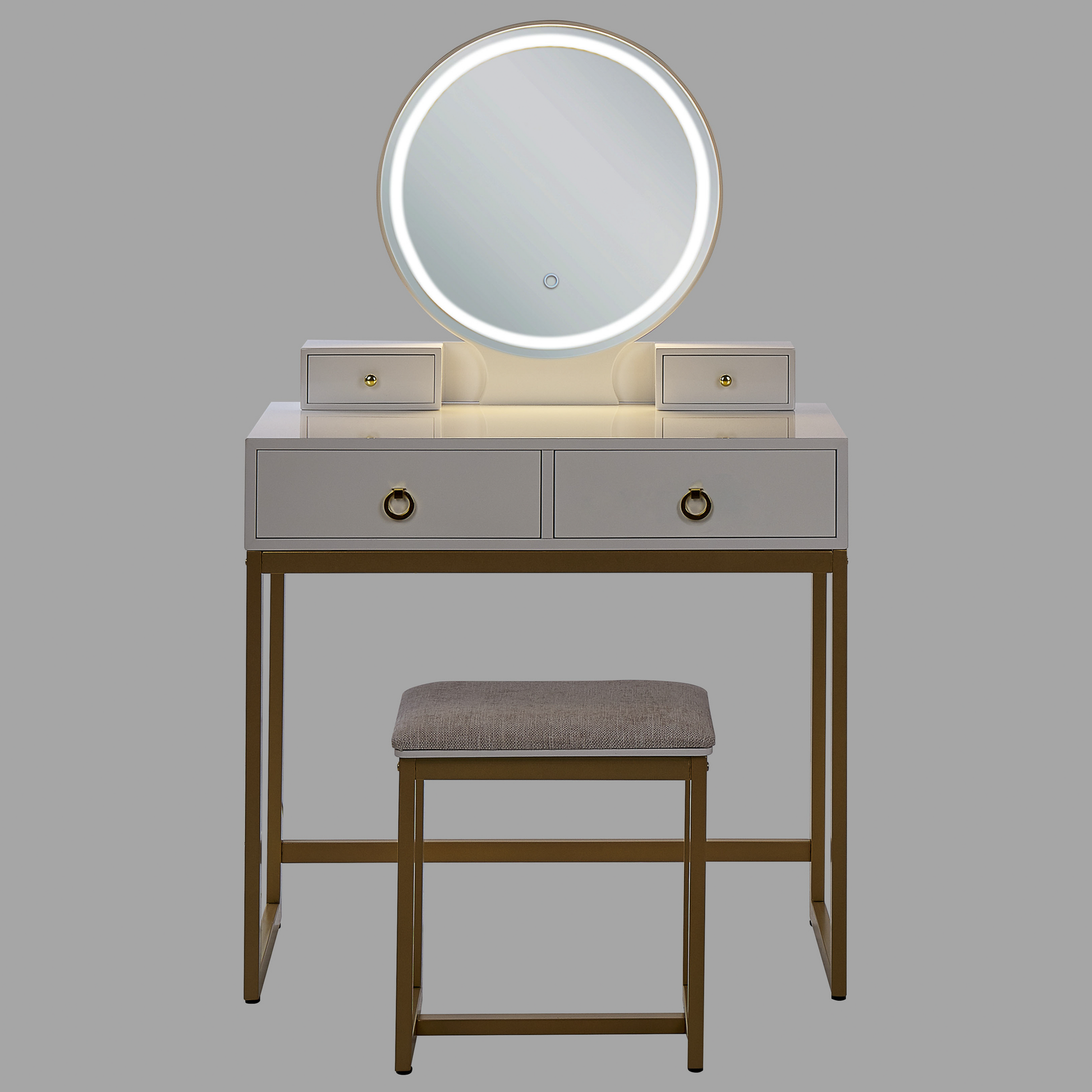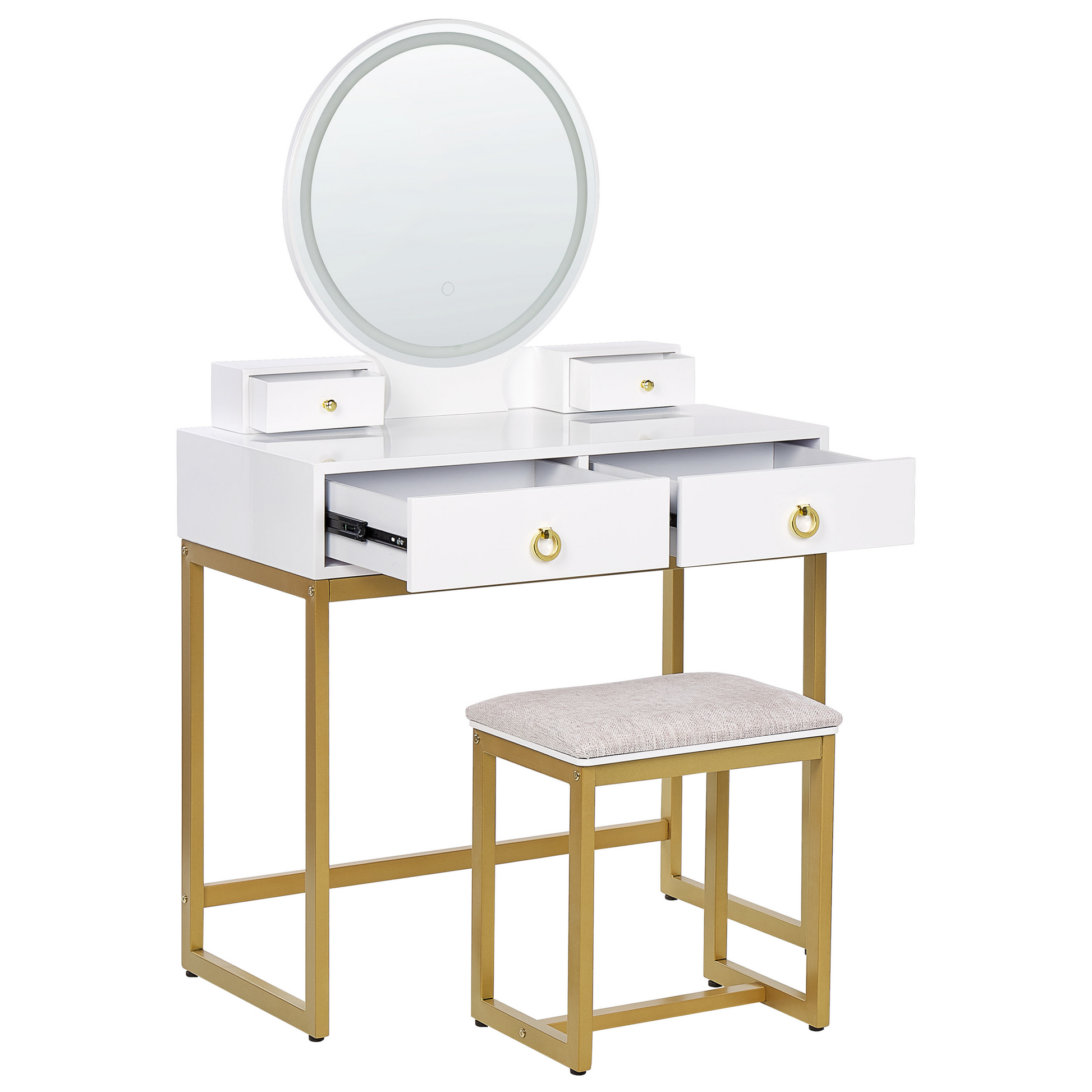 Schminktisch mit Spiegel und Hocker AUXON LED Weiss