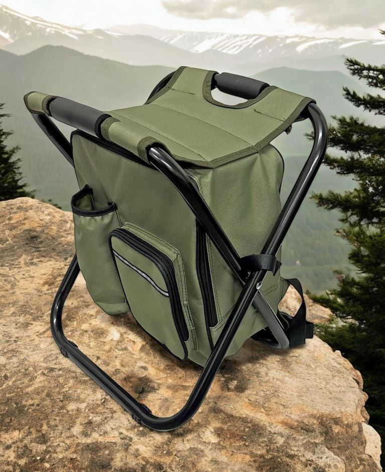 Sitzhocker faltbar als Rucksack mit Kühltasche Farbe: grün/schwarz