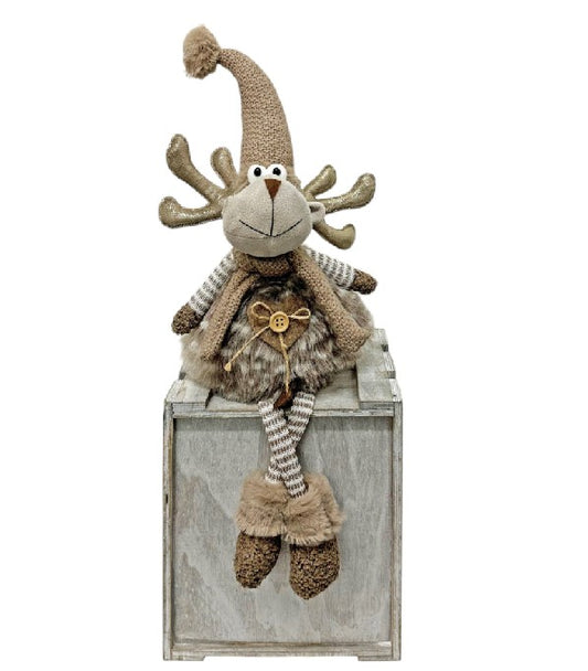 Deko Elch Kantenhocker braun weiss mit Schal und Mütze