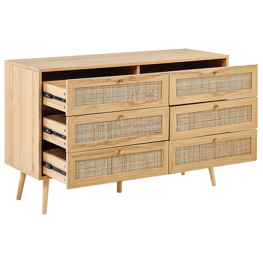 Kommode mit 6 Schubladen PEROTE Rattan 75 cm Holzoptik Hellbraun