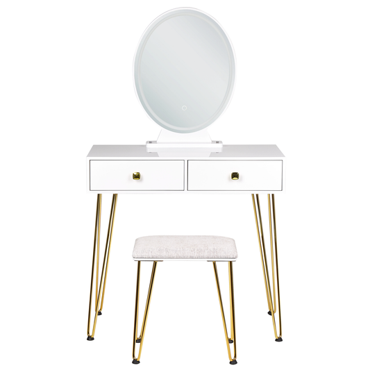 Schminktisch mit Spiegel und Hocker SOYE LED Weiss