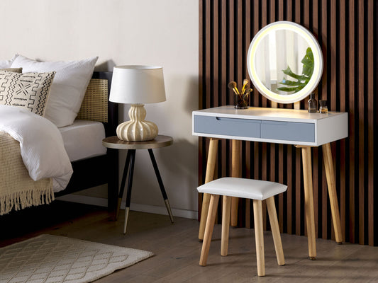 Schminktisch mit Spiegel und Hocker JOSSELIN LED Weiss