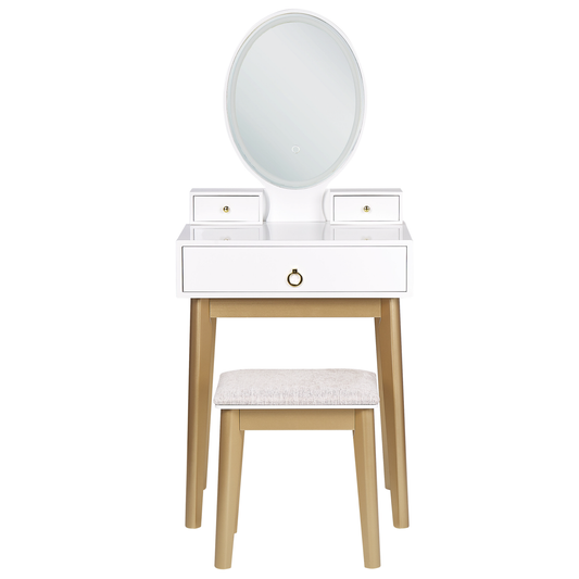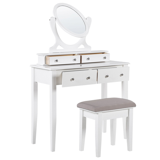 Schminktisch mit ovalem Spiegel Hocker 4 Schubladen weiss LUNEPrix habituel CHF 218.95Prix habituelPrix unitaire parCHF 229.99Prix soldé CHF 218.95Épuisé