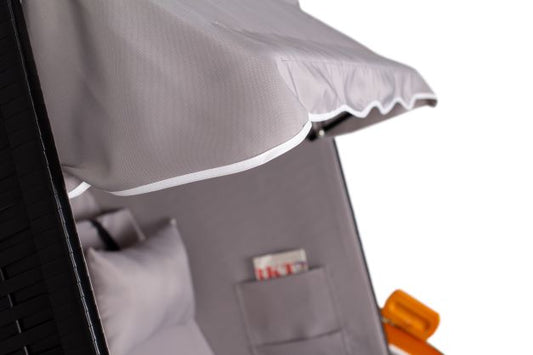 Strandkorb "Ostsee" Uni-Grau Massivholzgestell / wetterfestes Kunstrattan (schwarz)