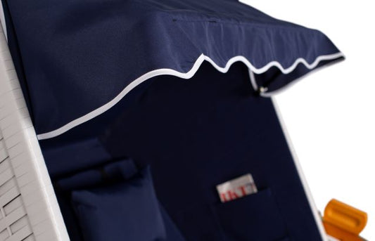 Strandkorb "Ostsee" Uni-Blau Massivholzgestell / wetterfestes Kunstrattan (weiss)