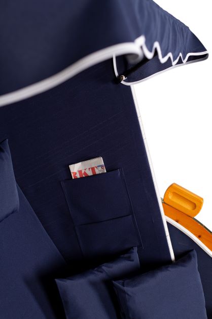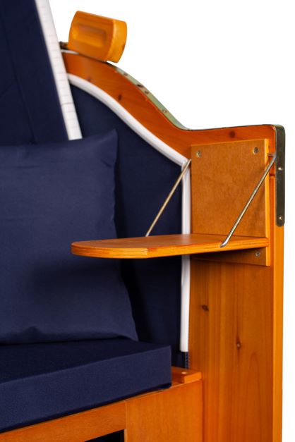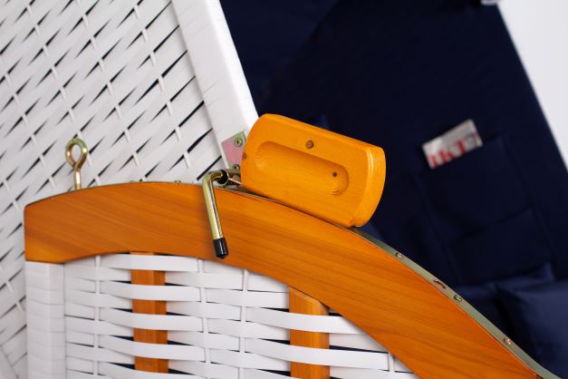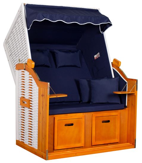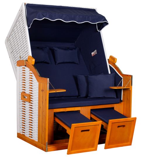 Strandkorb "Ostsee" Uni-Blau Massivholzgestell / wetterfestes Kunstrattan (weiss)