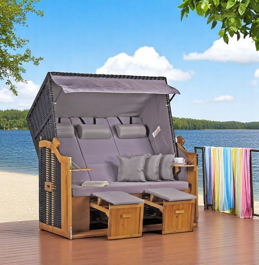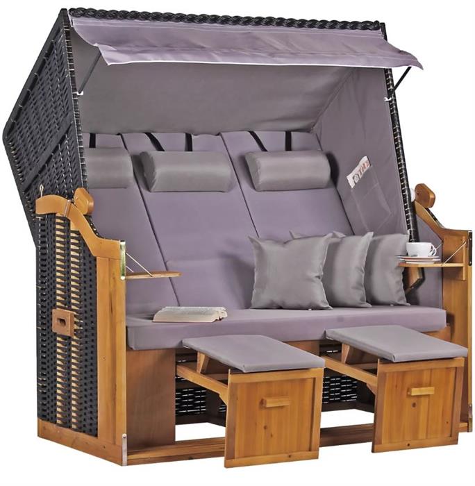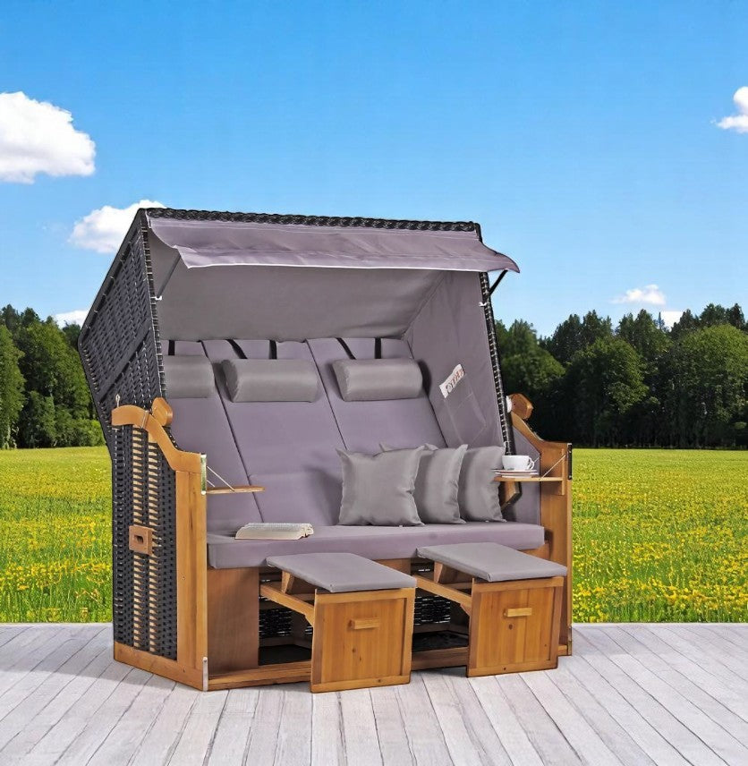 Strandkorb "Ostsee" XXL Uni-Grau Massivholzgestell / wetterfestes Kunstrattan (schwarz)