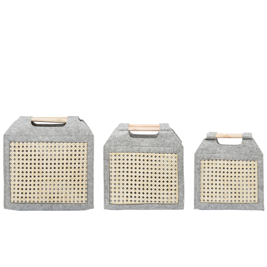 Aufbewahrungskorb Filz hellgrau 3er Set BAYSAI