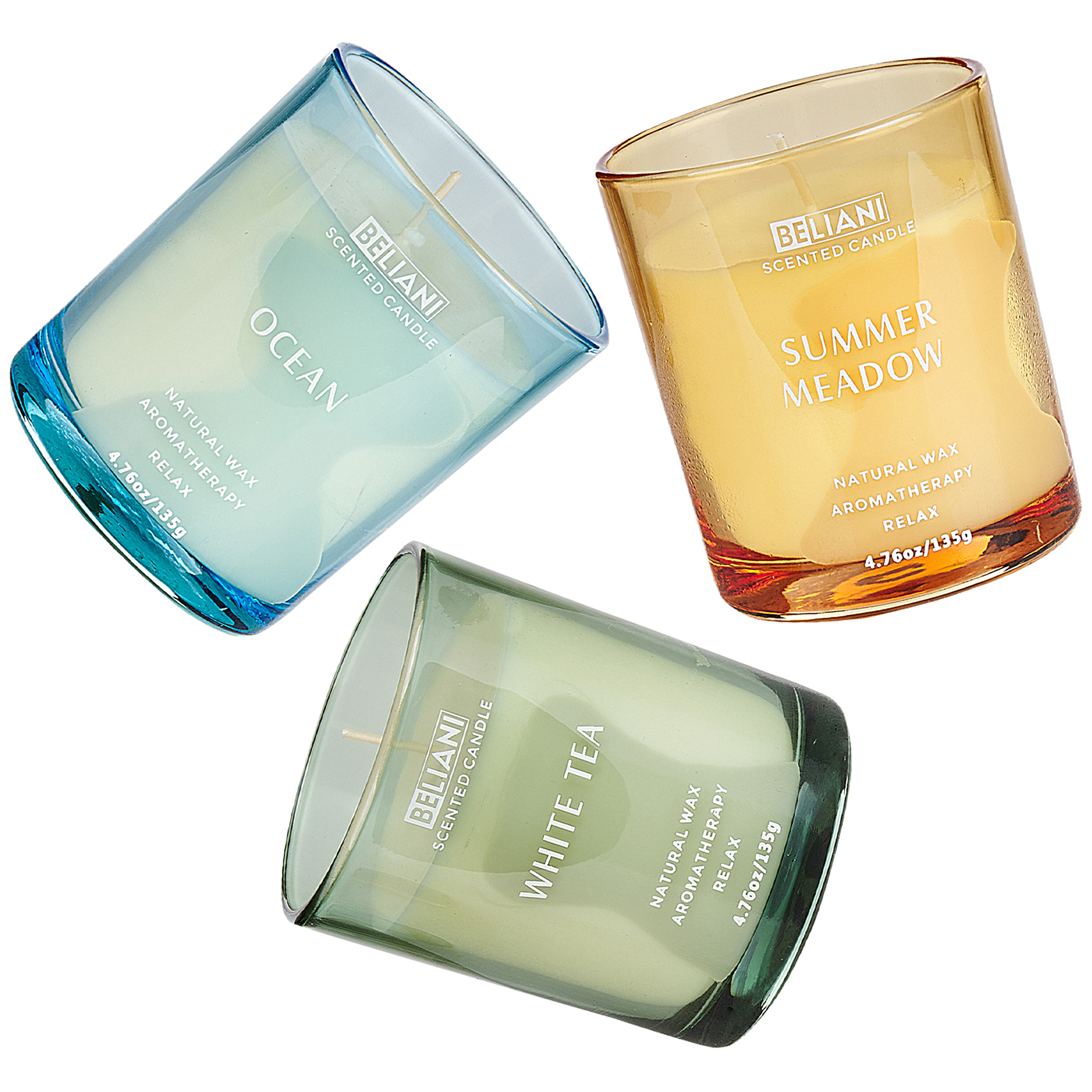 Frischen Sie Ihr Zuhause mit diesem Duftset auf und füllen Sie Ihre Wohnräume mit einem natürlichen, wunderbaren Duft. Jede der Aromakerzen besteht aus reinem Sojawachs und zeichnet sich durch eine lange und sichere Brenndauer aus. Dank ihrer natürlichen Düfte – Ozeanfrische, weisser Tee, Sommerwiese – können Sie sich nach einem langen Tag entspannen und abschalten. Die Kerzen sind mit Baumwolldochten versehen und werden in farbenfrohen, eleganten Gläsern geliefert, wodurch sie sich auch bei Nichtgebrauch wunderbar als Raumschmuck eignen.  Material: Sojawachs. Zusätzliches Material: Glas, Baumwolle.  Das Angebot beinhaltet: 3 x Duftkerze Höhe: 8 zusätzliche Information: Von Dingen fernhalten, die Feuer fangen können., Angezündete Kerzen nie unbeaufsichtigt brennen lassen. Breite: 7 Tiefe: 8 Art: Duftkerzen 3er Set Allgemeine Farbe: Grün Hauptmaterial: Sojawachs