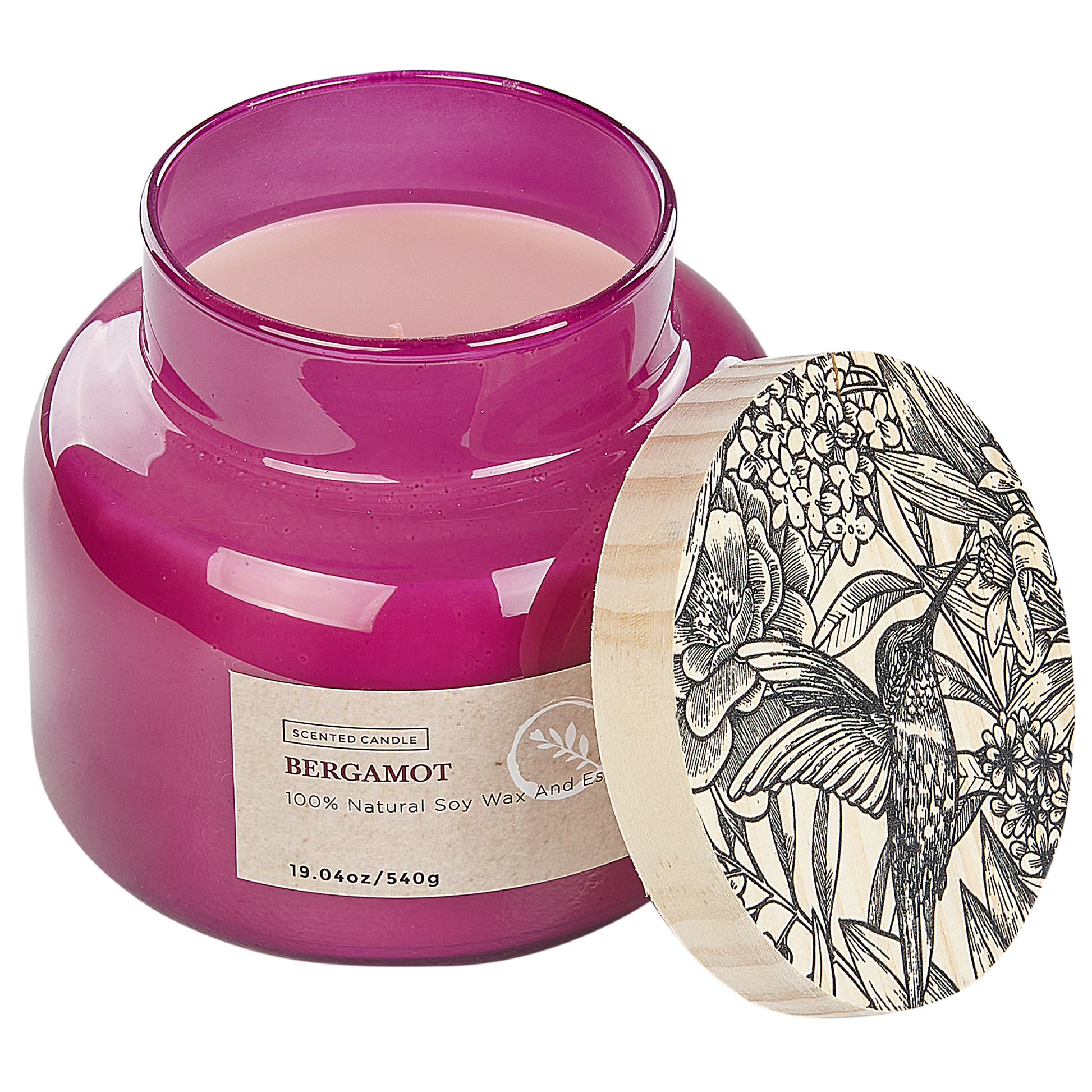 Bringen Sie mit dieser Kerze ein frisches, natürliches Aroma in Ihren Alltag. Die Duftkerze ist aus reinem Sojawachs hergestellt und kann viele Stunden lang brennen, wobei sie einen wunderbaren Bergamottenduft im Raum verbreitet. Das violette Glasgefäss und der verziehrte Deckel machen die Aromakerze auch zu einem grossartigen Dekoelement, das auf jeder Ablagefläche, definitiv die Aufmerksamkeit Ihrer Gäste auf sich ziehen wird. Material: Sojawachs. Zusätzliches Material: Glas, Baumwolle. Das Angebot beinhaltet: 1 x Duftkerze Höhe: 10 zusätzliche Information: Von Dingen fernhalten, die Feuer fangen können., Angezündete Kerzen nie unbeaufsichtigt brennen lassen. Breite: 10 Tiefe: 10 Art: Duftkerze Allgemeine Farbe: Violett Hauptmaterial: Sojawachs