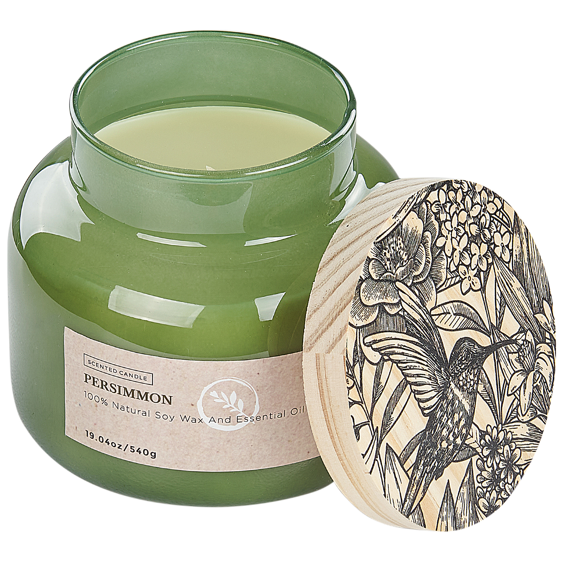Bringen Sie mit dieser Kerze ein frisches, natürliches Aroma in Ihren Alltag. Die Duftkerze ist aus reinem Sojawachs hergestellt und kann viele Stunden lang brennen, wobei sie einen wunderbaren Persimonenduft im Raum verbreitet. Das grüne Glasgefäss und der verziehrte Deckel machen die Aromakerze auch zu einem grossartigen Dekoelement, das auf jeder Ablagefläche, definitiv die Aufmerksamkeit Ihrer Gäste auf sich ziehen wird. Material: Sojawachs. Zusätzliches Material: Glas, Baumwolle. Das Angebot beinhaltet: 1 x Duftkerze Höhe: 10 zusätzliche Information: Von Dingen fernhalten, die Feuer fangen können., Angezündete Kerzen nie unbeaufsichtigt brennen lassen. Breite: 10 Tiefe: 10 Art: Duftkerze Allgemeine Farbe: Grün Hauptmaterial: Sojawachs
