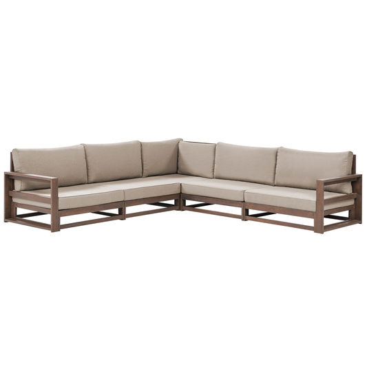 Lounge Set Akazienholz dunkelbraun 4-Sitzer rechtsseitig modular Auflagen taupe TIMOR II