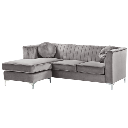 Ecksofa Samtstoff rechtsseitig grau 3-Sitzer TIMRA