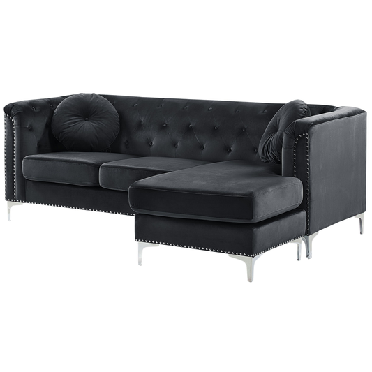 Ecksofa Samtstoff rechtsseitig schwarz FLEN