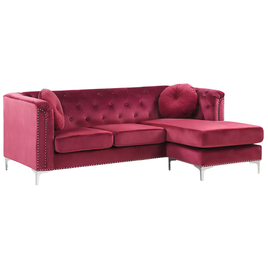 Ecksofa Samtstoff rechtsseitig burgunderrot FLEN
