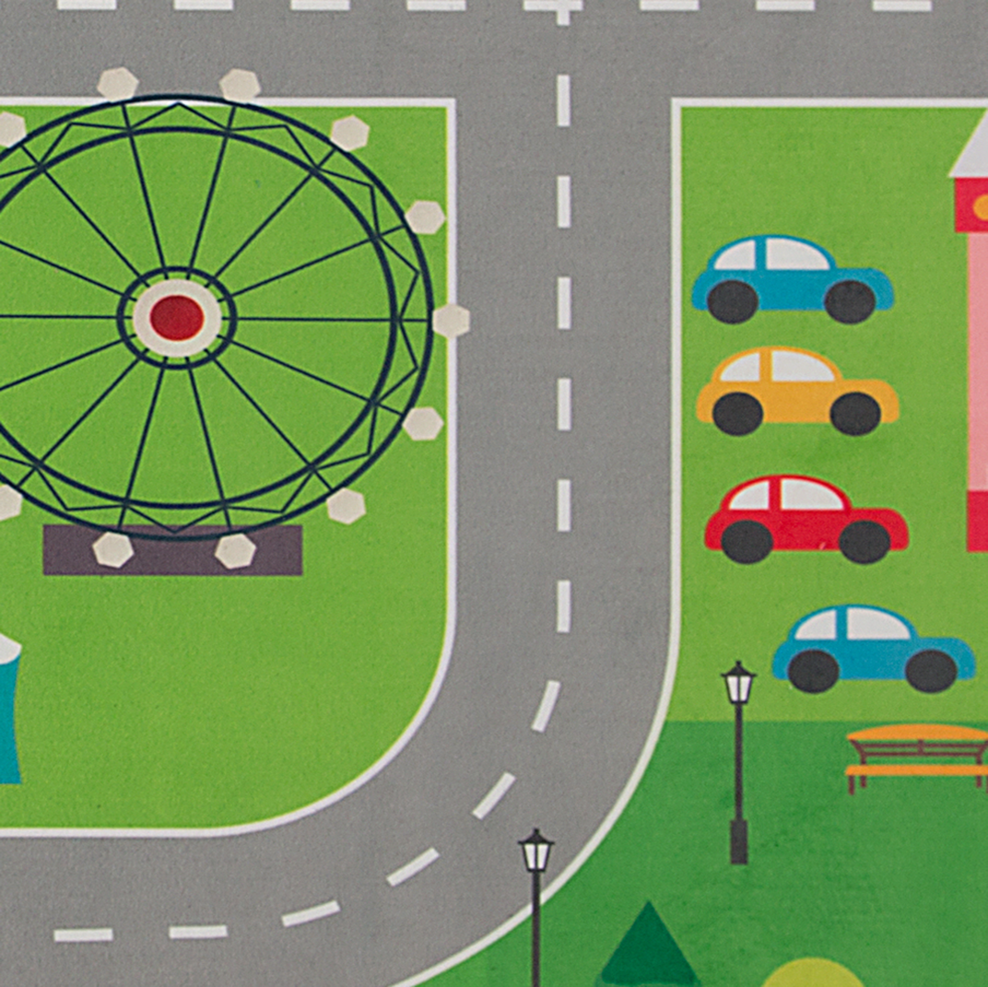 Kinderteppich grün 80 x 150 cm Stadt-Motiv Kurzflor SEBEN