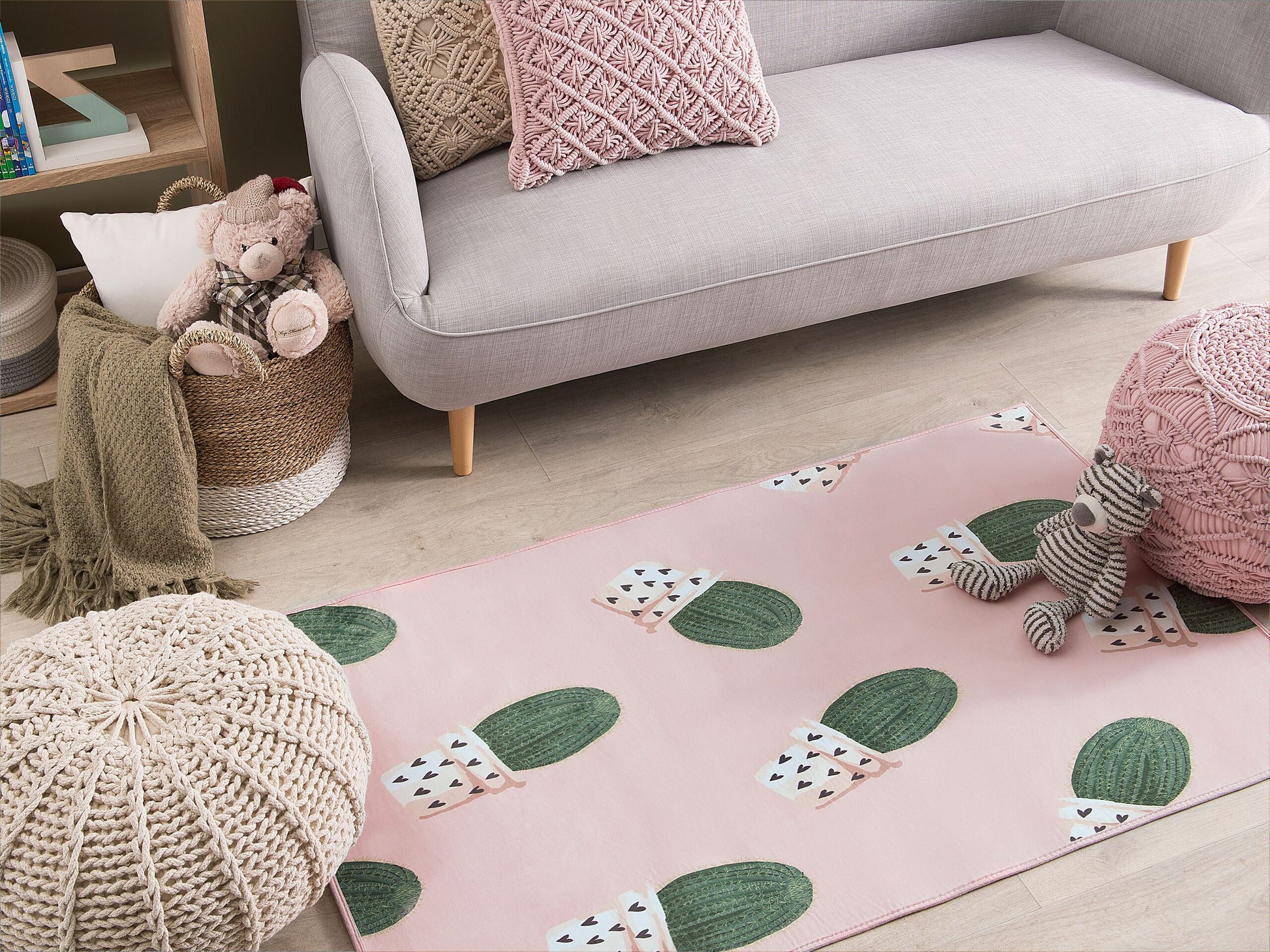 Kinderteppich rosa 80 x 150 cm Kaktus-Muster Kurzflor ELDIVAN