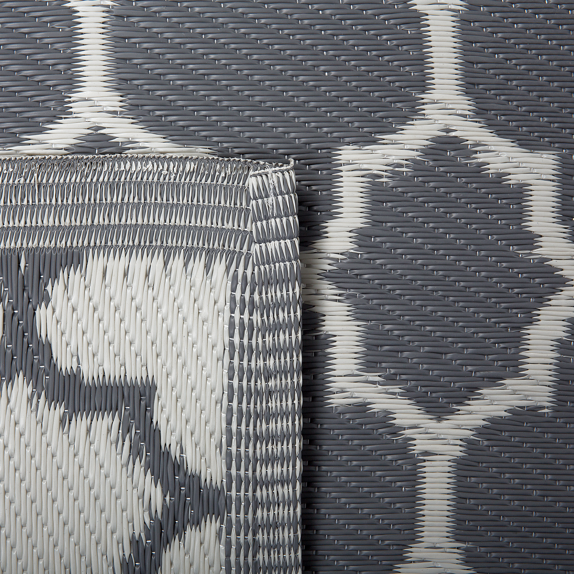 Outdoor Teppich grau 90 x 180 cm marokkanisches Muster zweiseitig Kurzflor SURAT