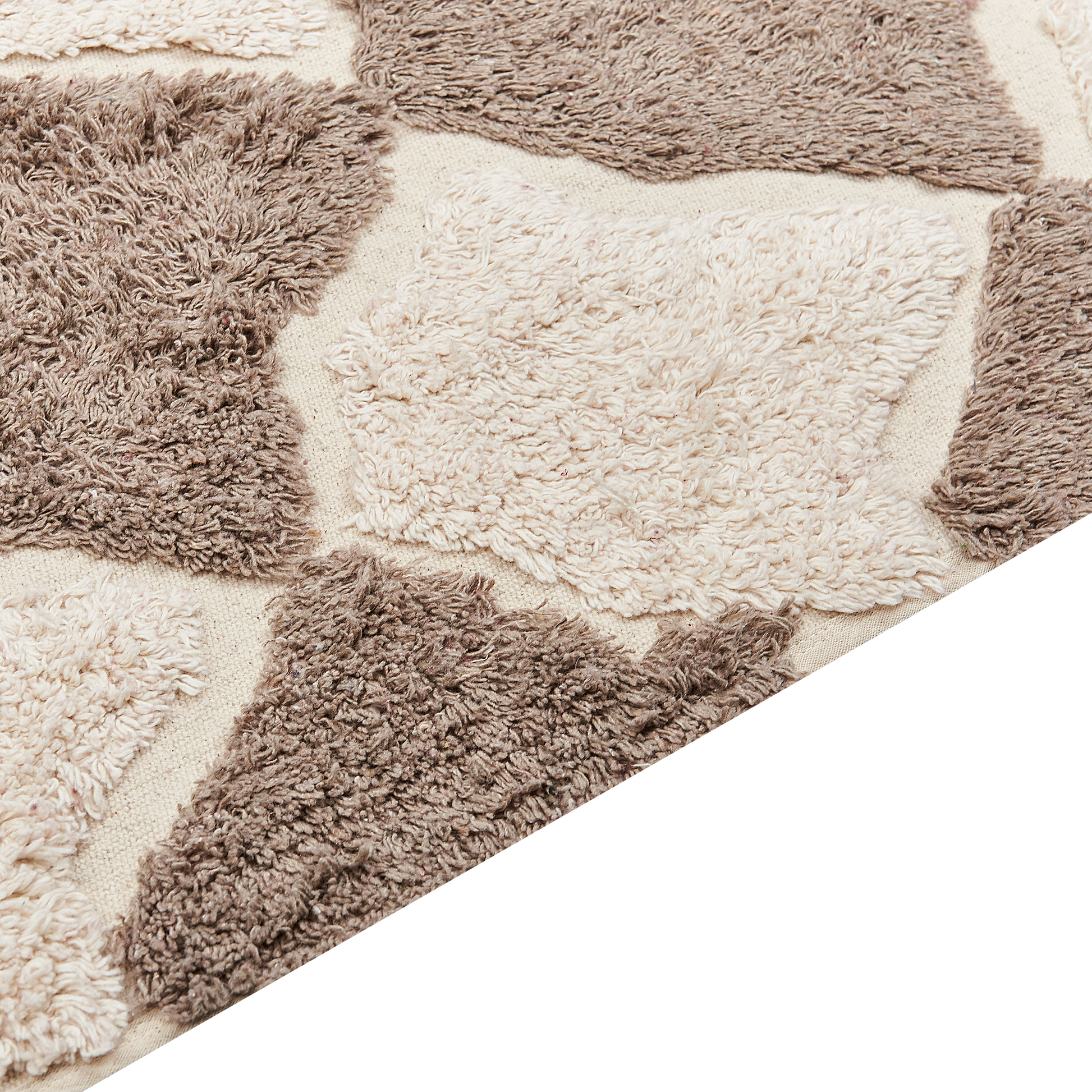 Mit diesem handgetufteten Teppich bringen Sie auf einfache Weise etwas Gemütlichkeit in Ihr Zuhause. Er ist aus Baumwolle gefertigt und fühlt sich daher angenehm weich an. Das Design ist in einer warmen Farbkombination gehalten, so dass Sie den Teppich problemlos mit anderen Dekorationen kombinieren können. Da er handgefertigt ist, können Sie sich auf ein einzigartiges Wohnaccessoire in Ihrem Zuhause freuen. Material: Baumwolle. Material Zusammensetzung: 100% Baumwolle Gewicht: 5 Montage: Benötigt keine Montage Das Angebot beinhaltet: 1 x Teppich zusätzliche Information: Der Artikel könnte Haare verlieren. Dies ist ein normaler Vorgang und stellt keinen Qualitätsmangel des Produkts dar., Der Artikel benötigt einige Zeit, bis er seinen ursprünglichen Zustand erreicht hat – daher sollte er so schnell wie möglich ausgerollt werden und innerhalb von 72 Stunden seine vollständige Grösse wieder erreichen. Für einen optimalen Effekt sollte man die Teppichkanten mit schweren Gegenständen fixieren., Jeder Artikel ist ein handgefertigtes Unikat; Farbschattierung und Muster können daher vom Foto abweichen., Herstellungstechnik: Beim Handtuftverfahren wird das Garn mit einer speziellen Nadel in das Trägermaterial des Teppichs eingestochen. Dabei wird das Garn nicht so fest in das Trägermaterial eingearbeitet wie bei anderen Methoden (z.B. Webteppiche). Daher können sich manchmal einzelne Fäden lösen. Gestalten: Rechteckig Breite: 160 Länge: 230 Art: Teppich Stil: Boho Allgemeine Farbe: Braun Muster: Geometrisches Muster Hauptmaterial: Baumwolle Dichte: 1150