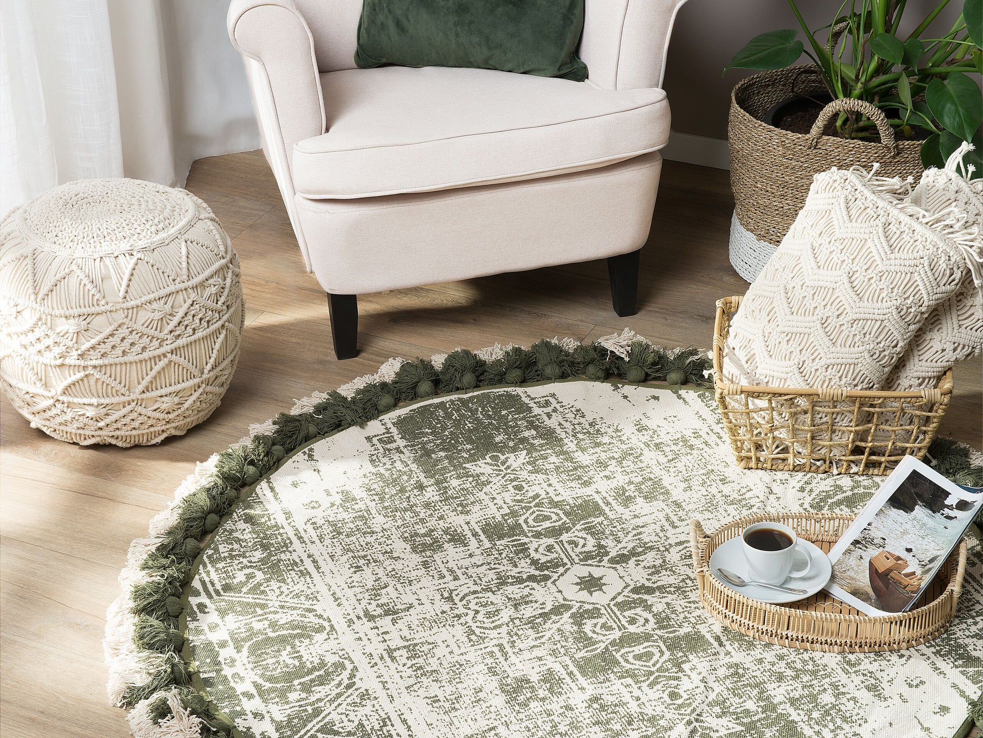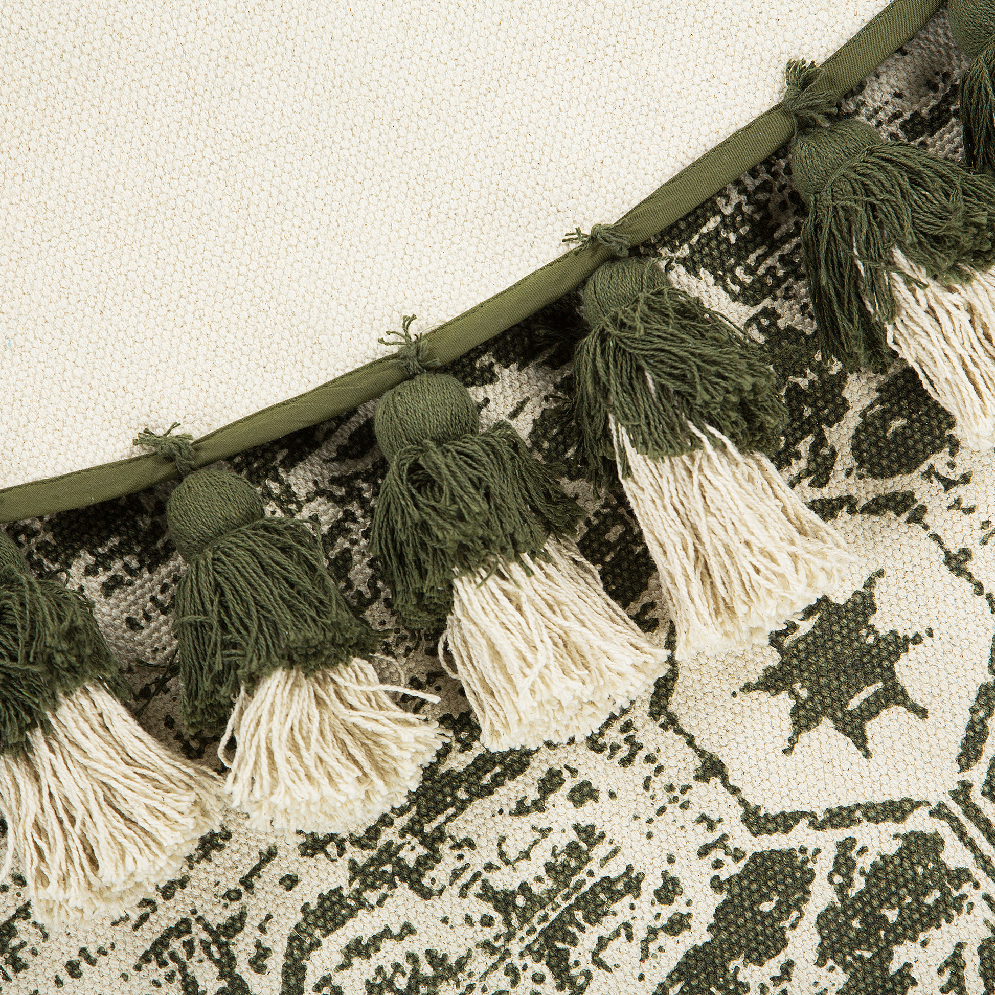 Teppich Baumwolle creme / grün ø 120 cm mit Quasten Kurzflor KAHTA
