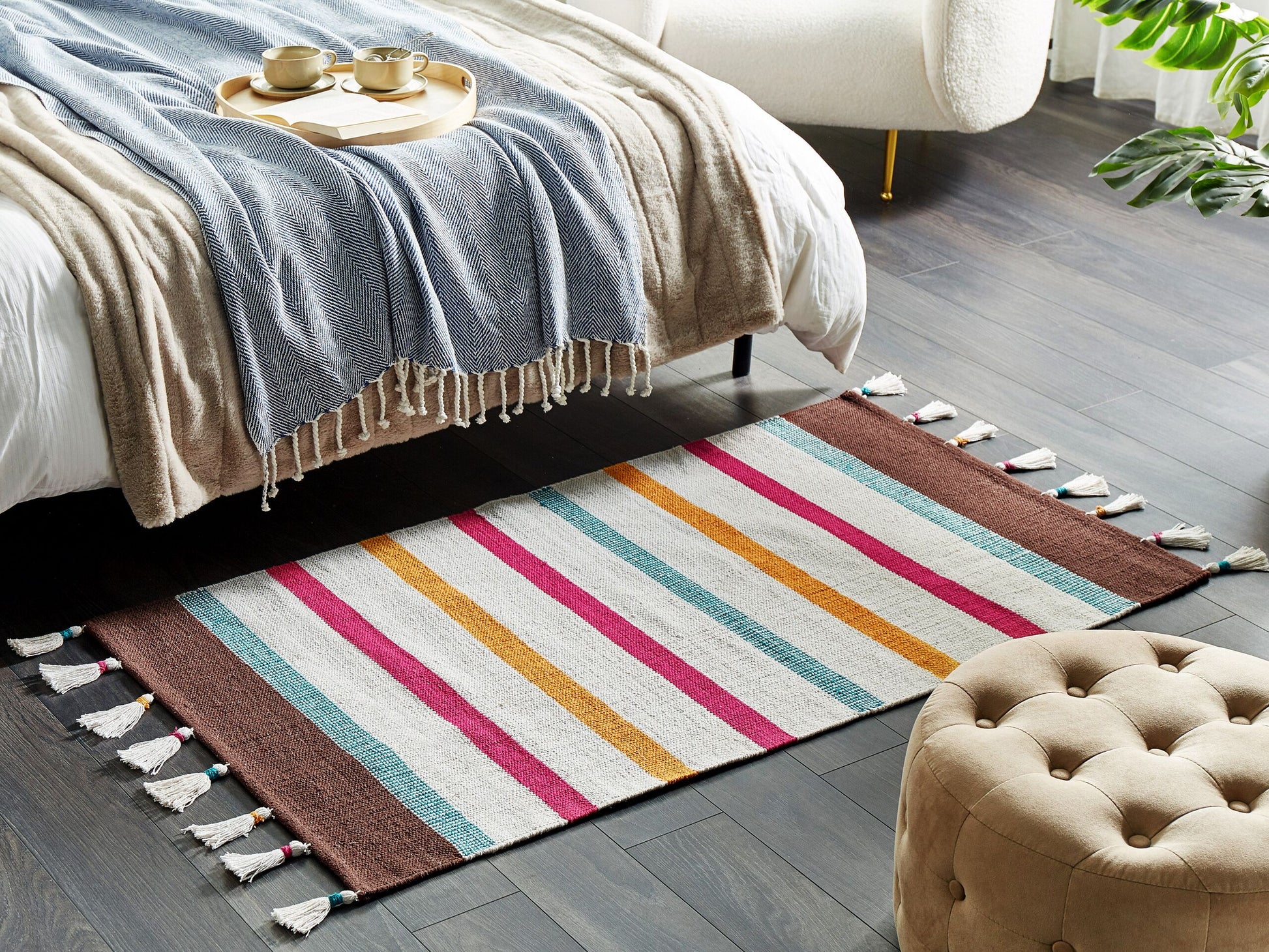 Teppich Baumwolle mehrfarbig 80 x 150 cm gestreiftes Muster Kurzflor HISARLI