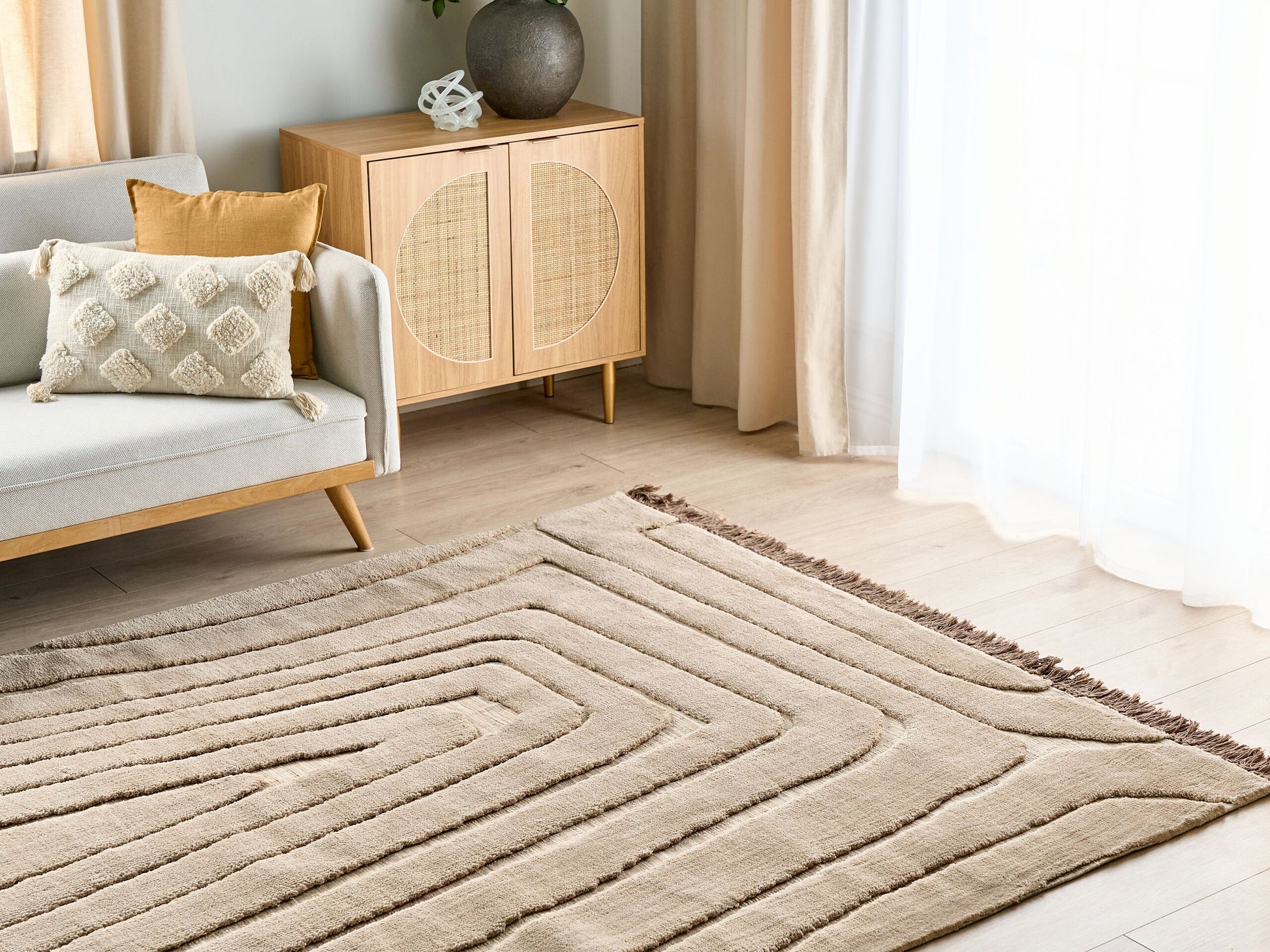 Teppich beige 200 x 300 cm mit Fransen Kurzflor SAZOO